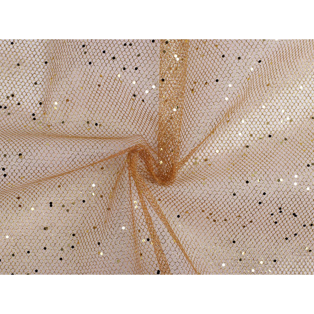 Tyl s jemnými glitry má velká oka (Ø3,5 - 4 mm), je tužší a drží tvar. Využijete ho na karnevalové kostýmy a vánoční aranžmá.Pruží lehce po šíři.