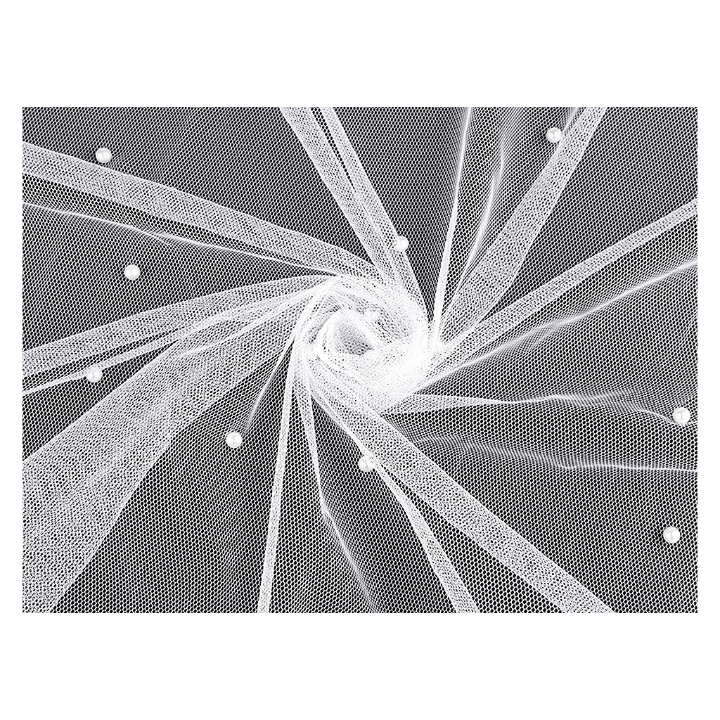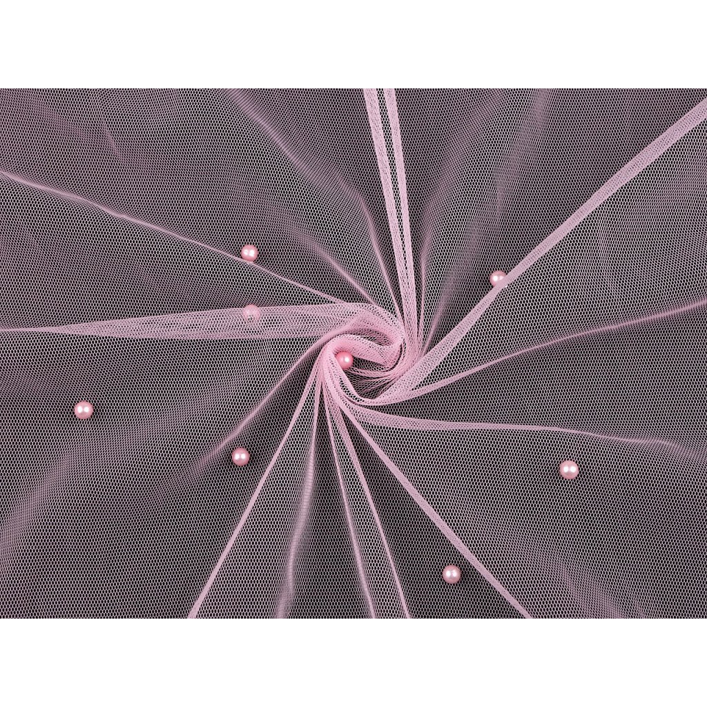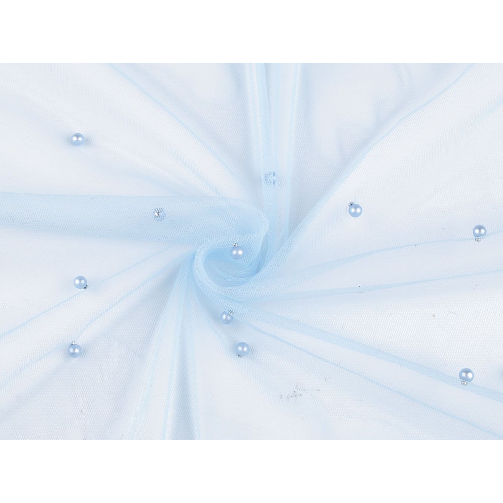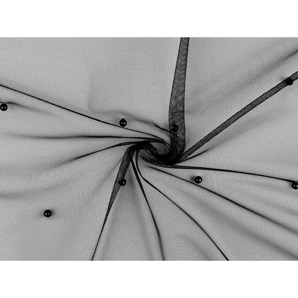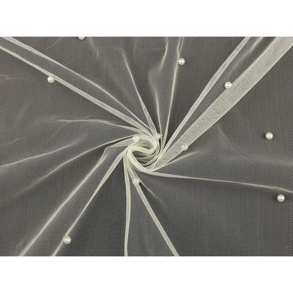 Jemný tyl zdobí přinýtované perly. Je vhodný na výrobu svatebních závojů, šatů, sukní apod.