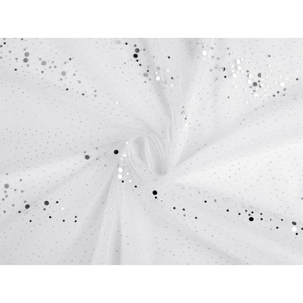 Tyl zdobí lesklé flitry, které z něj neopadávají. Je jemný, krásně splývá. Využijete ho na karnevalové kostýmy, šití sukní apod. Je vhodný také na různá aranžmá.Pruží po šíři.