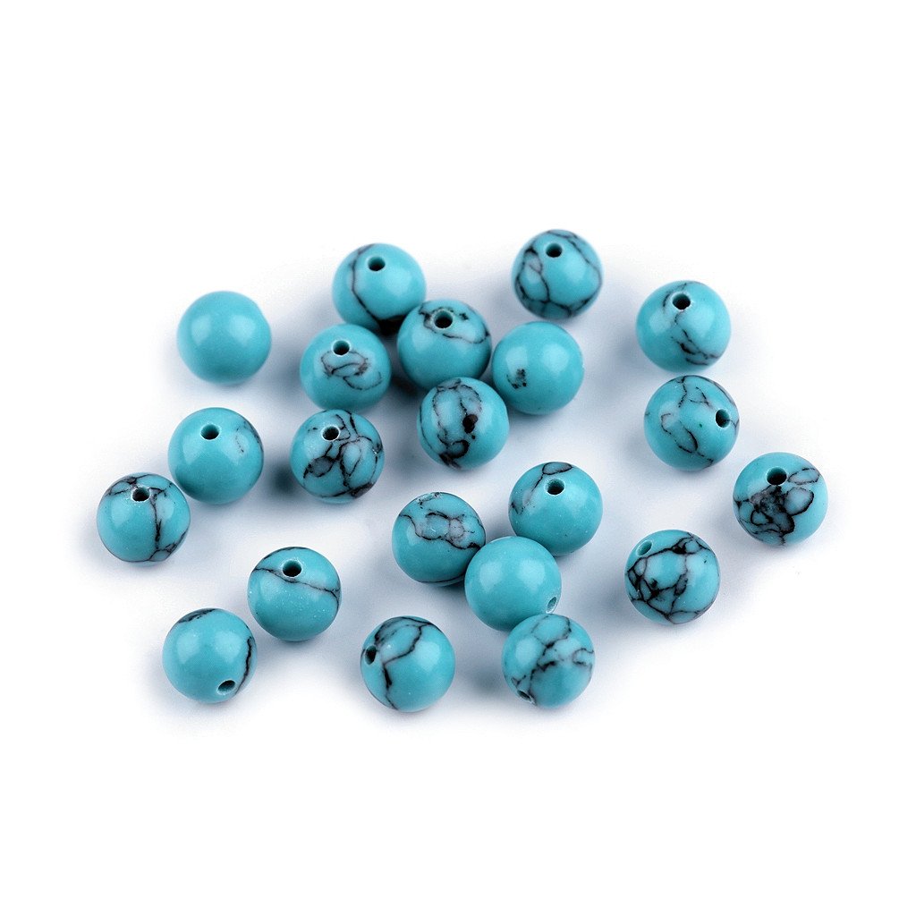 Korálky z Tyrkenitu jsou oblíbené šperkaři pro svou jedinečnou kresbu. Jejich velikost je ideální na výrobu Buddhových náramků. Jsou oblíbené na techniku drátování, v kombinaci s drahými kovy, ale i s obyčejnými drátky. Skvěle vypadají i na jednoduchých návlekových šňůrách, které zajímavě ozvláštní. Korálky jsou uměle dobarvené.- Průměr: 8 mm