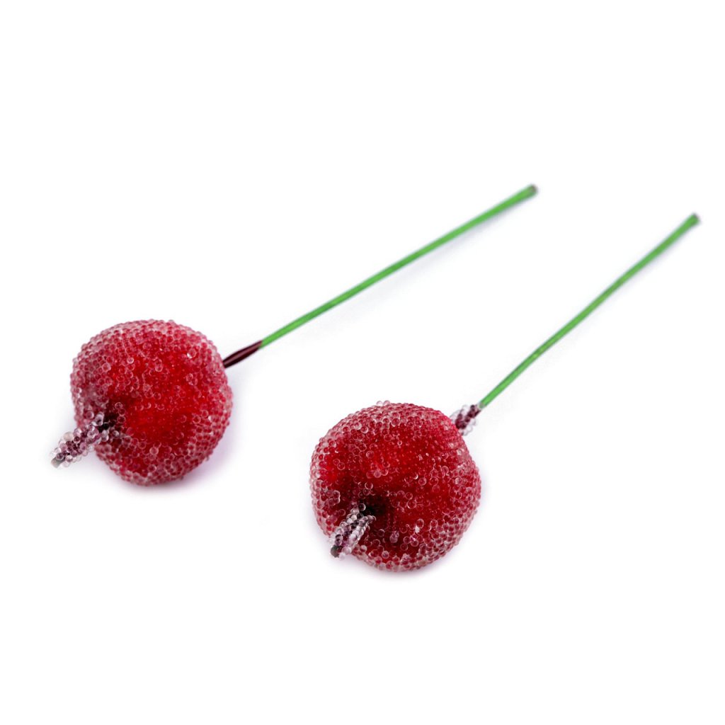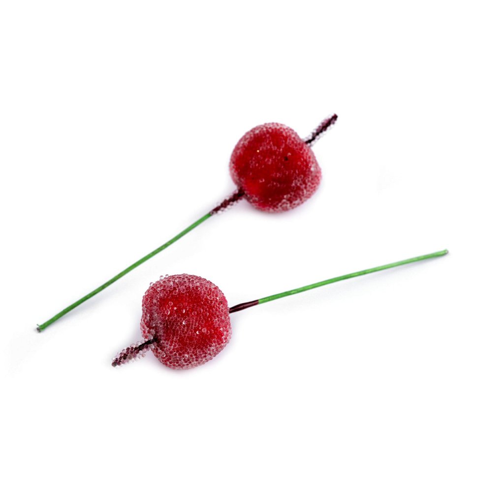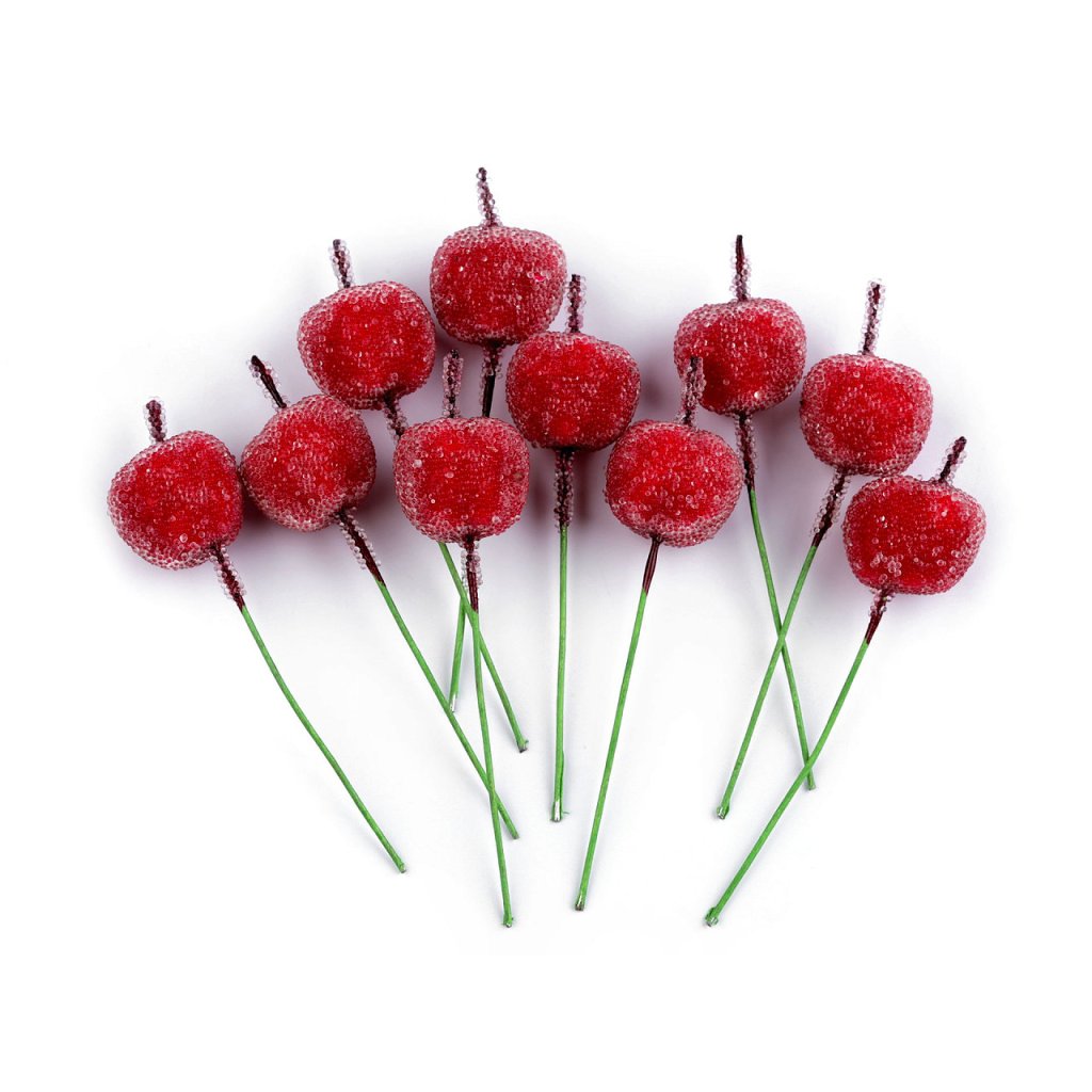 Malá dekorační jablíčka jsou zahalené drobnými transparentními kuličkami, které vytvářejí dojem námrazy. Díky připevněnému drátku se lehce tvarují. Jablíčka využijete na výrobu podzimních a zimních vazeb, věnců, ikeban apod.