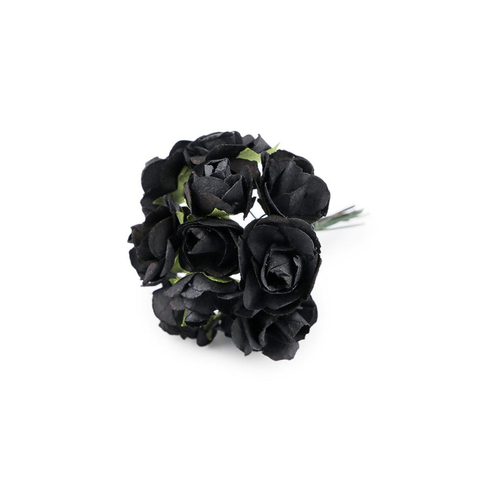Kvalitní papírové růže mají jemný romantický vzhled. Jako stonek slouží ohebný drát. V jednom svazku je 12 ks růží.