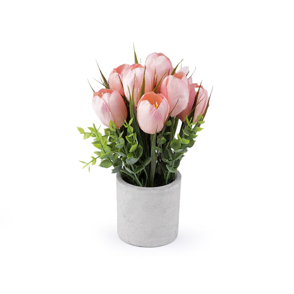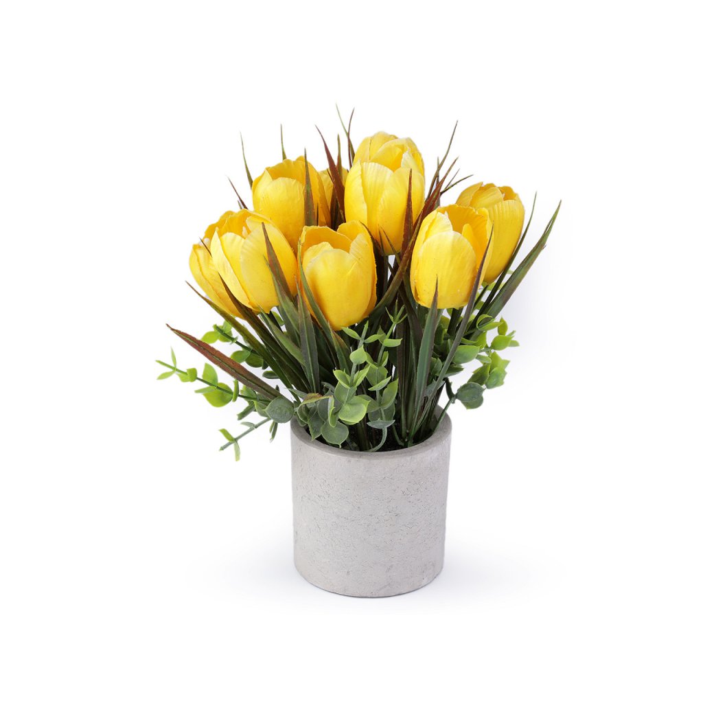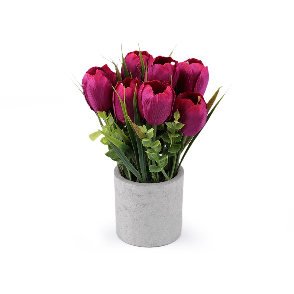 Umělé tulipány v květináči mají na rozdíl od živých mnohem delší životnost. Během jara a velikonočních svátků zútulní a rozjasní každý interiér. Sádrový květináč má dobrou stabilitu. V květináči je 9 květů tulipánů.