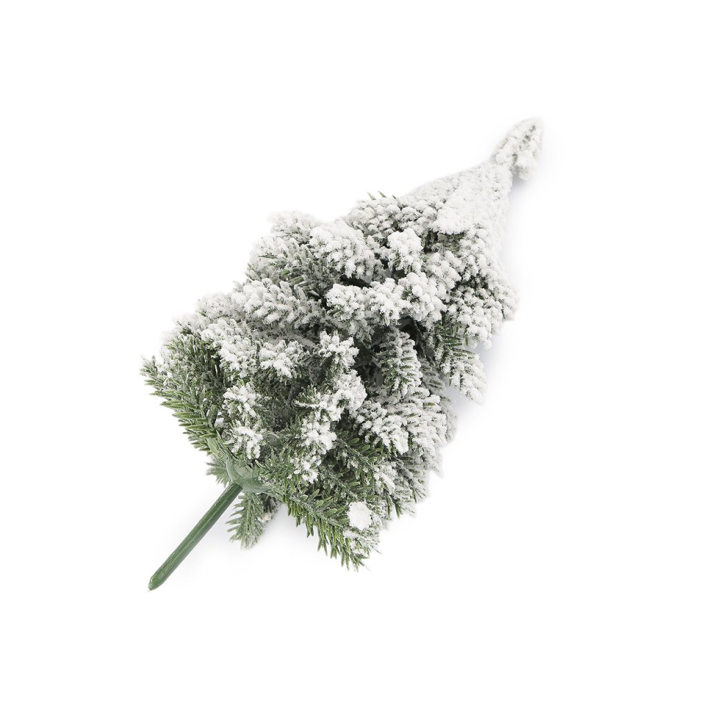Umělý stromeček na drátku zasněžený do věnců, květináčů 13 cm, 17 cm