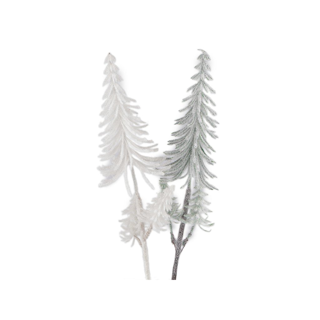 Dekorační stromeček na floristickém drátku je pokrytý umělým sněhem. Využijete ho jako ozdobu truhlíků, květináčů, vánočních kytic a různých zimních aranžmá.