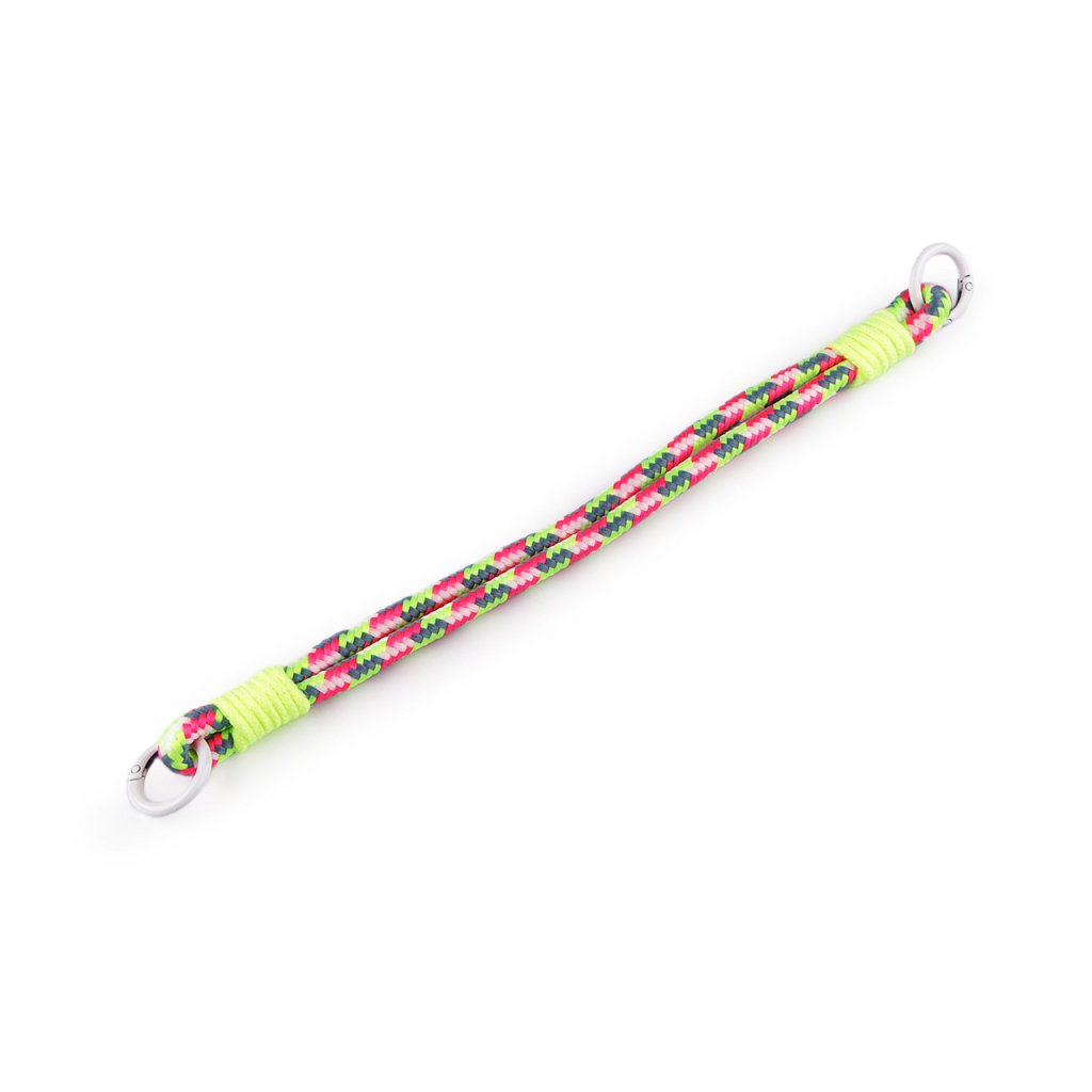 Oboustranné poutko s karabinami přináší originalitu a funkčnost v jednom. Díky barevnému a hravému provedení se stane nejen užitečným, ale i módním prvkem vašich osobních věcí. Karabiny na obou koncích umožňují snadné připevnění a odpojení, což vám usnadní manipulaci. Je ideální pro zavěšení klíčů, přívěsků, a dalších drobných předmětů, které chcete mít po ruce. Můžete jej použít k uchycení na tašky, batohy nebo jiná zavazadla. Na obou koncích má kulaté otevírací karabiny.