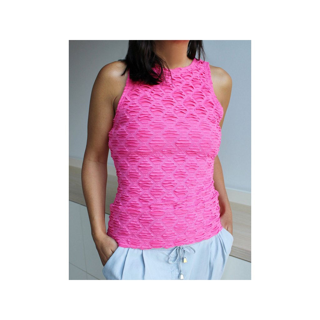 Úplet s efektními průřezy využijete na šití sportovního oblečení a dresů, ale i plavek. Látka je dvojitá, má dvě vrstvy. Pruží všemi směry.