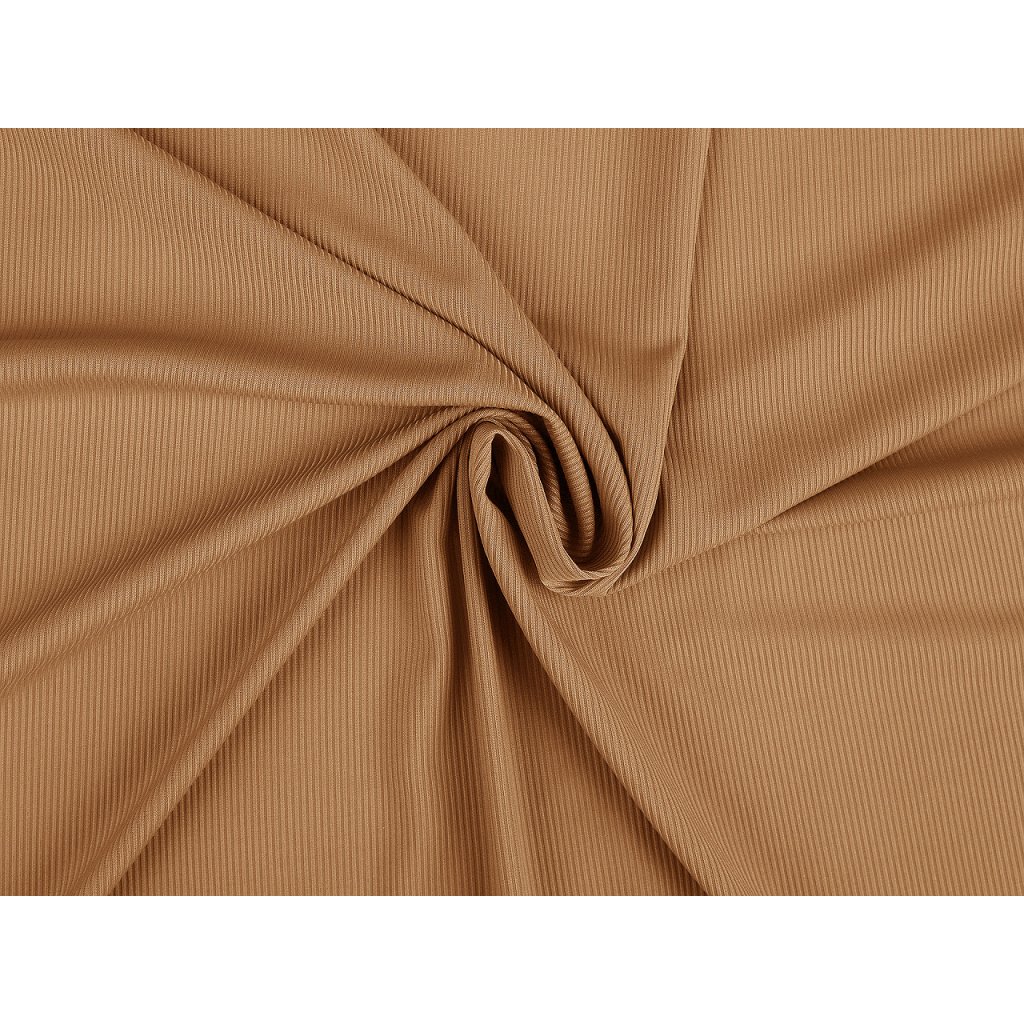 Žebrovaný úplet je splývavý a pruží víc do šířky než do délky. Využijete ho na šití triček, tílek, šatů, legín apod.