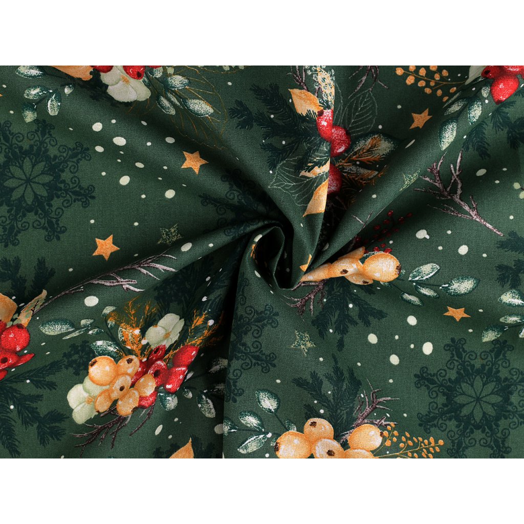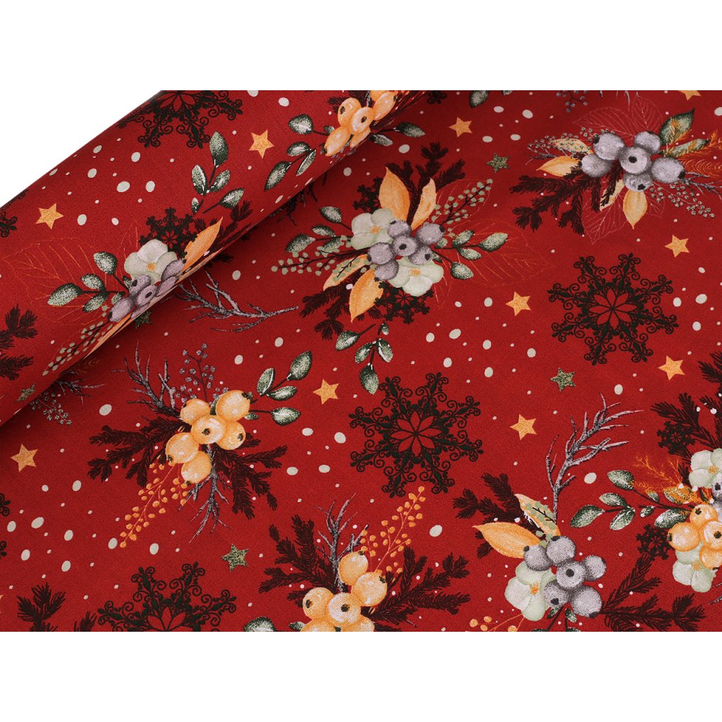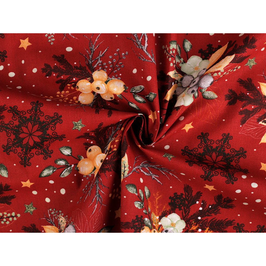 Bavlněné plátno zdobí poutavý vánoční potisk s větvičkami a sněhovými vločkami. Můžete z něj ušít různé vánoční dekorace, ubrusy, polštáře, povlečení, pytlíčky apod. Ušité výrobky dodají vašemu domovu sváteční atmosféru.