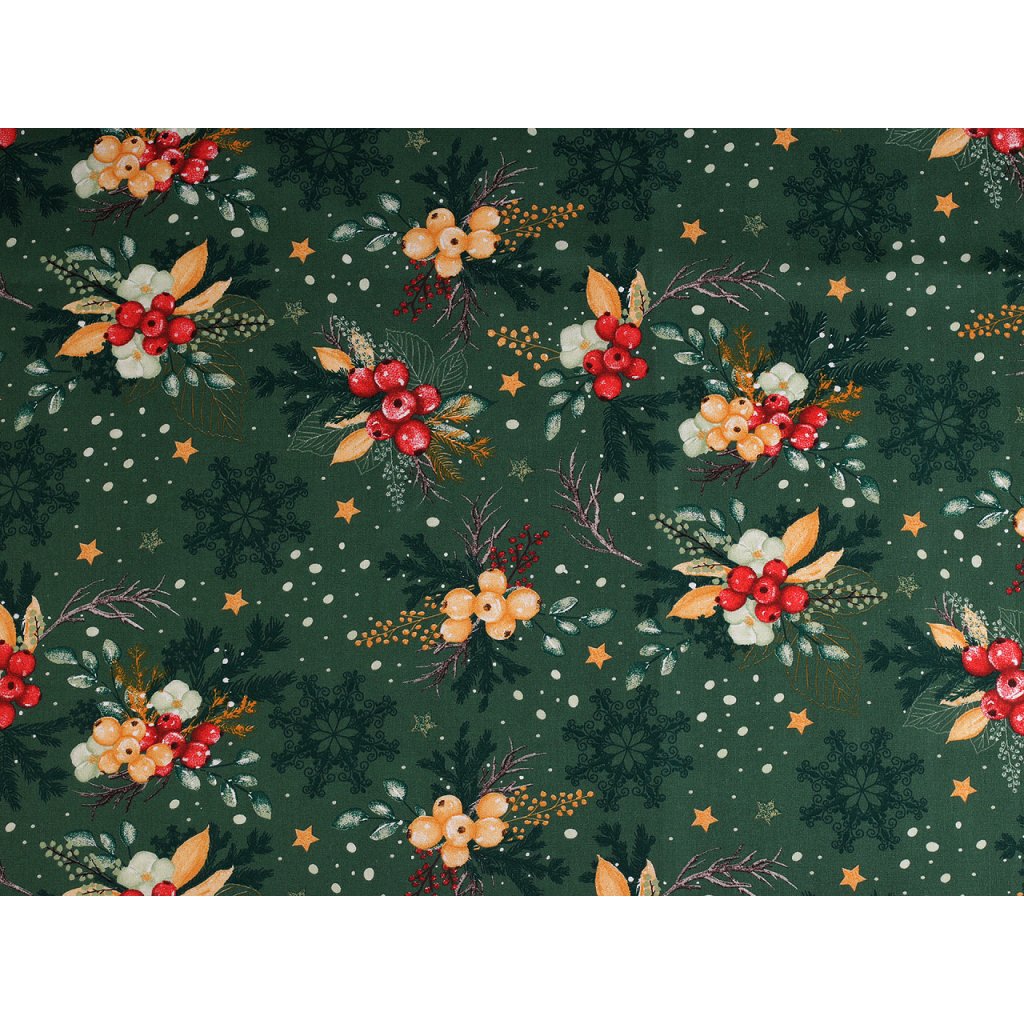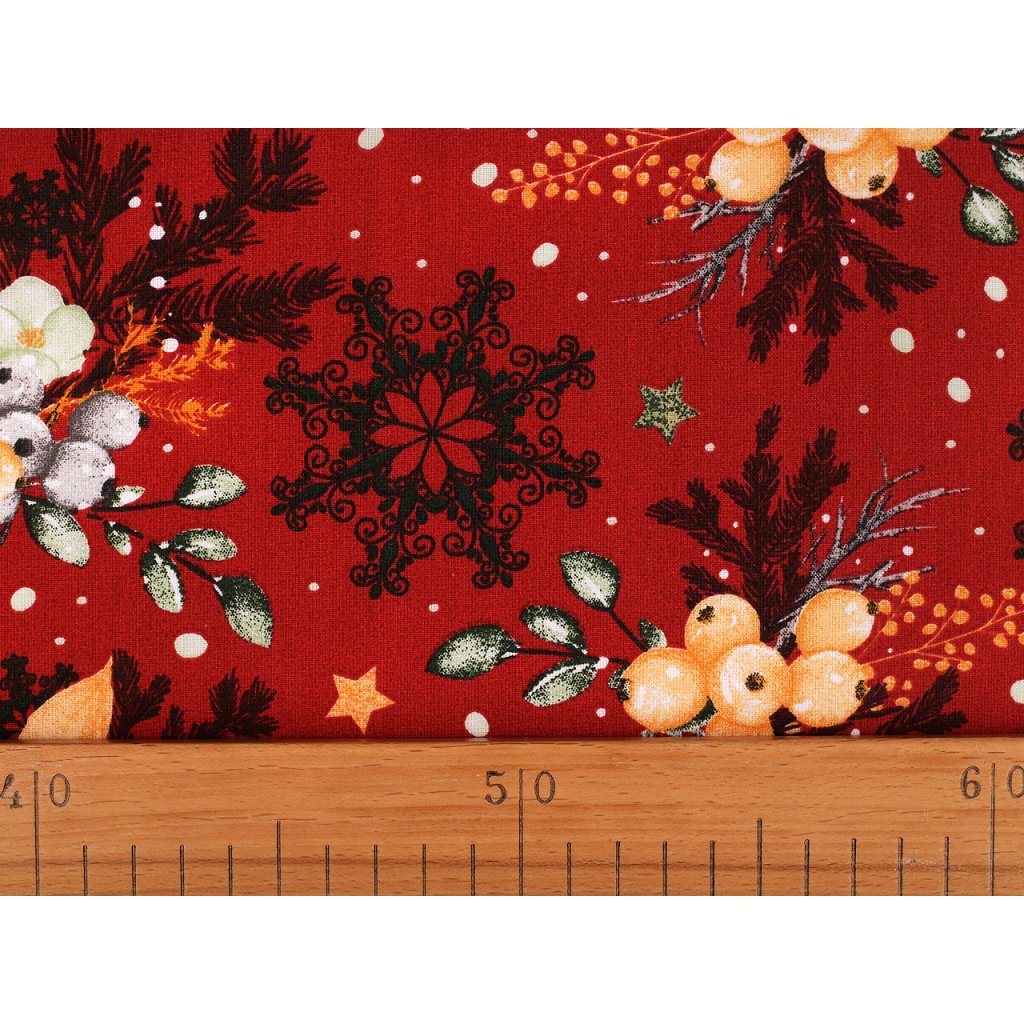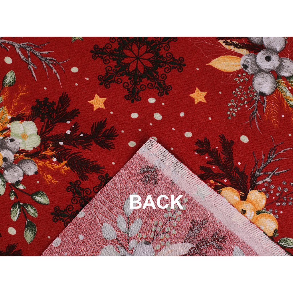 Bavlněné plátno zdobí poutavý vánoční potisk s větvičkami a sněhovými vločkami. Můžete z něj ušít různé vánoční dekorace, ubrusy, polštáře, povlečení, pytlíčky apod. Ušité výrobky dodají vašemu domovu sváteční atmosféru.