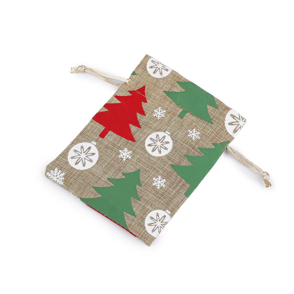 Dárkový pytlík s vánočním potiskem je vynikající na rychlé a efektní zabalení malých dárků. Materiál pytlíku svým zpracováním připomíná jutu. Uzavírá se pomocí stahovacích saténových šňůrek.