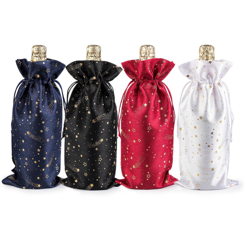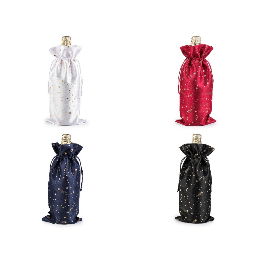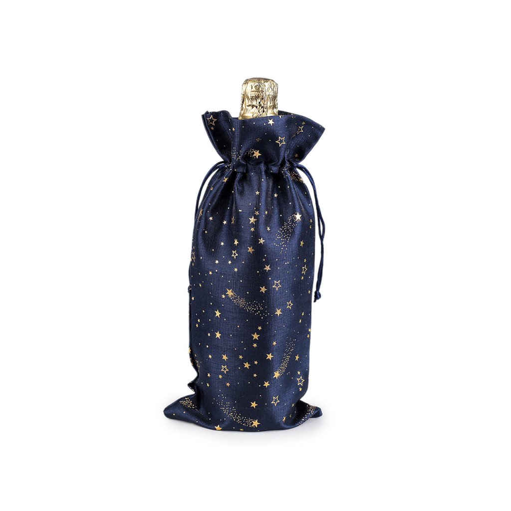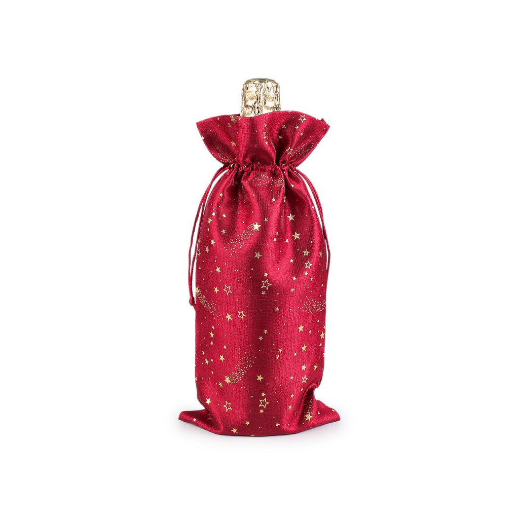Vánoční dárkový pytlík ozdobený zlatým metalickým potiskem hvězdiček působí elegantně a luxusně. Je určený na zabalení lahví a jiných podlouhlých dárků. Pytlík je dostatečně vysoký, ať už se rozhodnete pro dárek s alkoholem nebo s domácí limonádou, ušetří vám čas při balení. Stahuje se pomocí kulatých saténových šňůrek, dárku dodá osobní kouzlo a půvab.