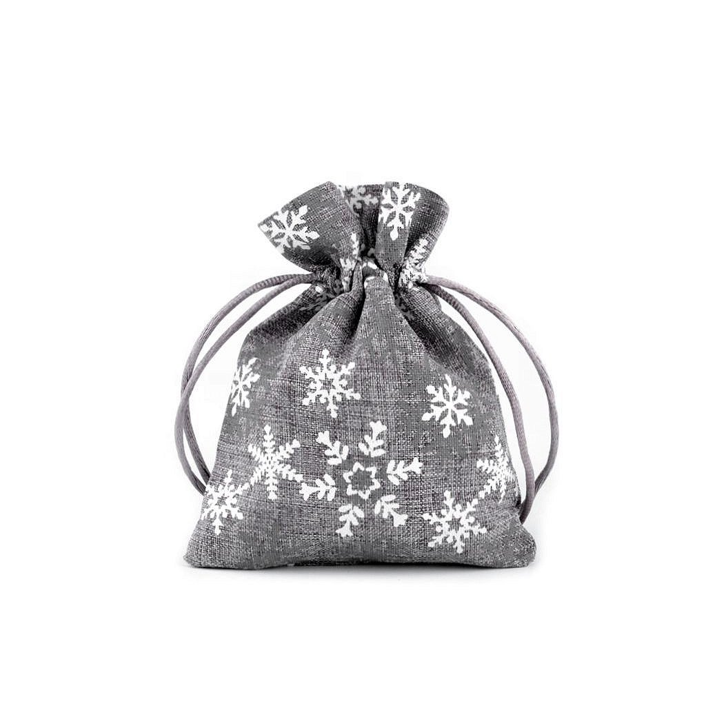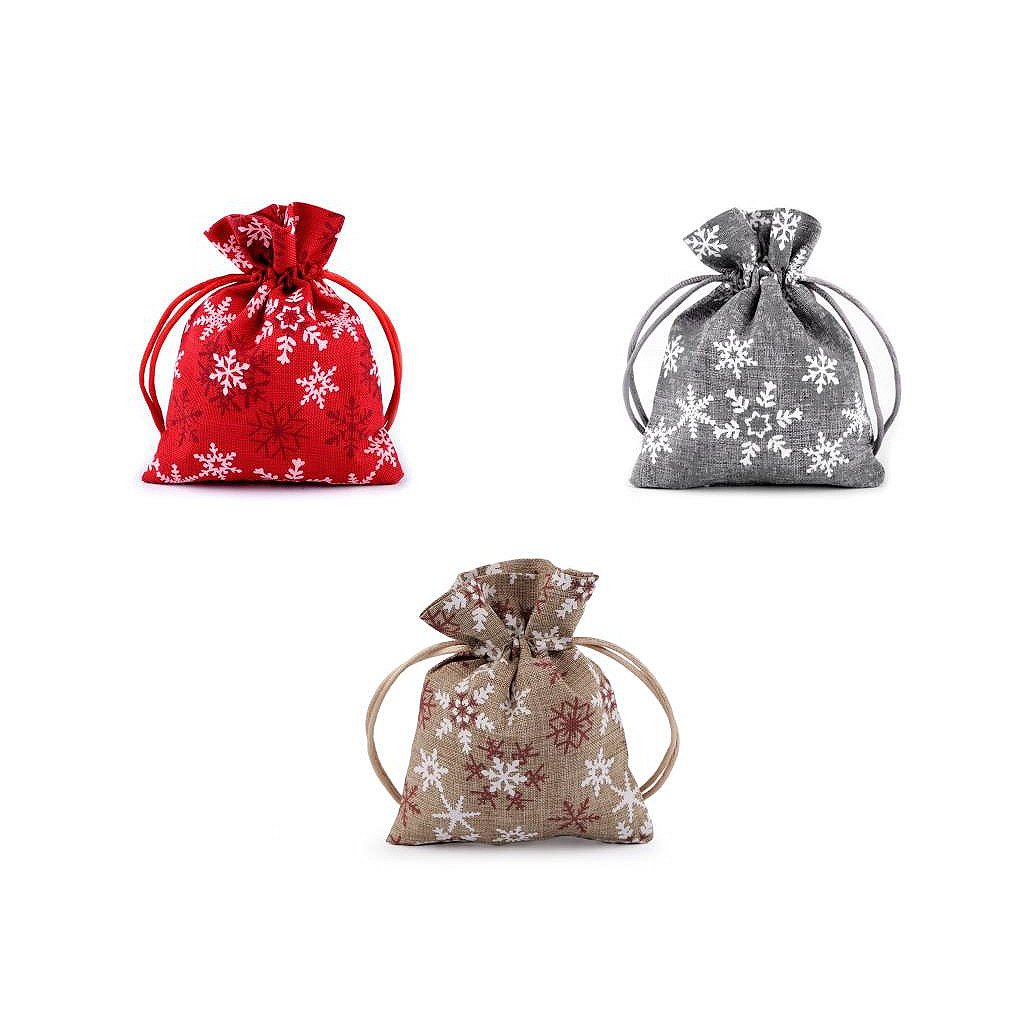 Vánoční dárkový pytlík vločky 10x13 cm imitace juty