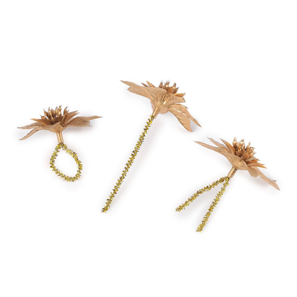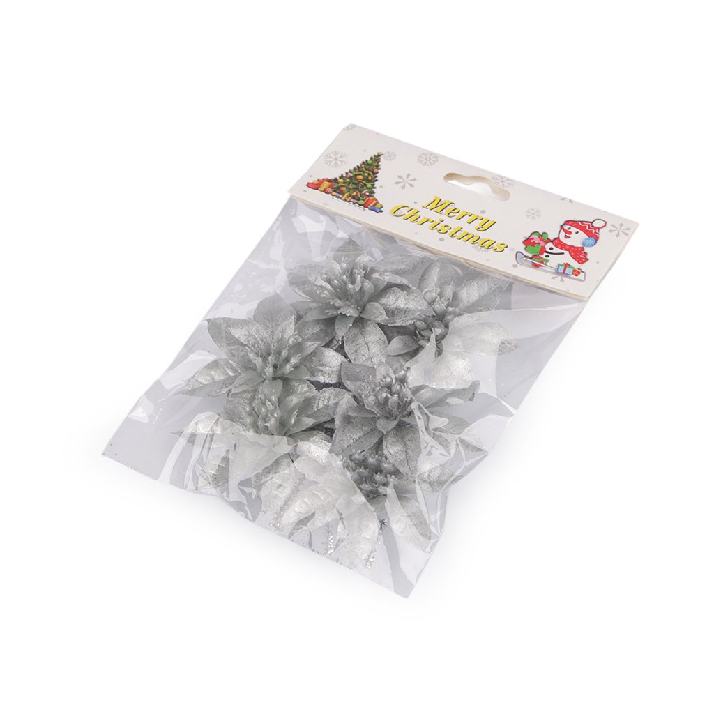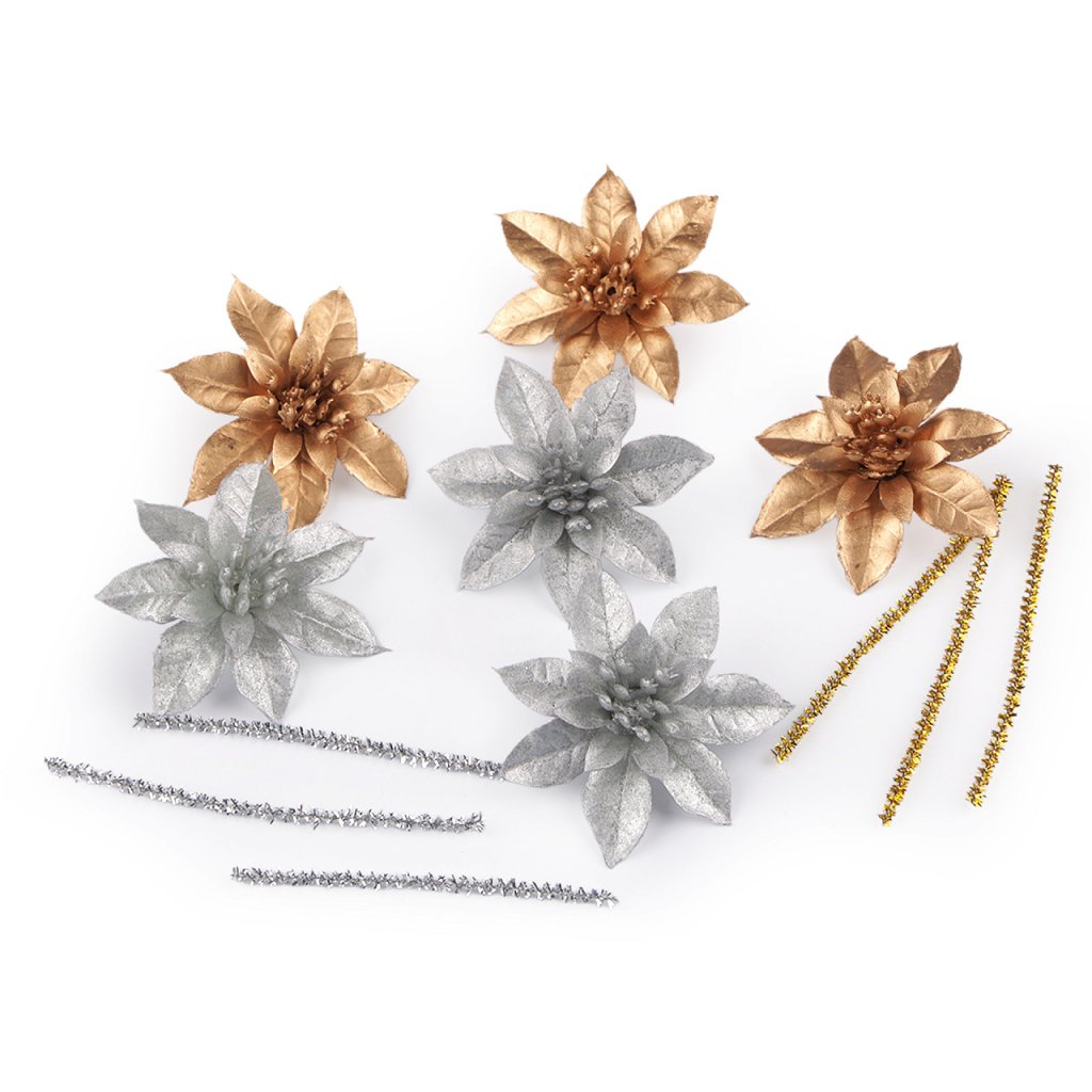 Metalické vánoční hvězdy jsou poutavým detailem sváteční výzdoby. V balení najdete chlupaté drátky, díky kterým můžete květy připevnit do věnců, různých vánočních aranžmá, na stromeček, na dárky apod.