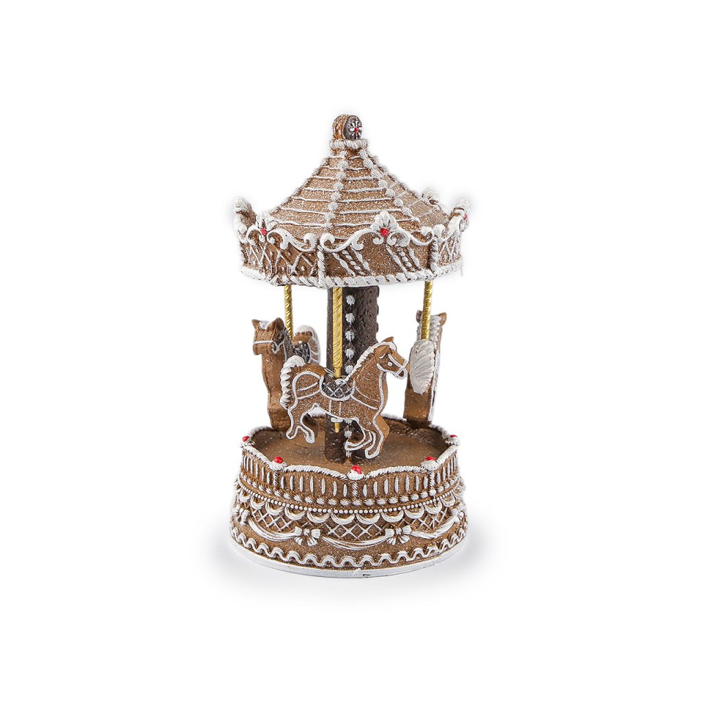 Vánoční hrající kolotoč, svítící kostel - imitace perníku