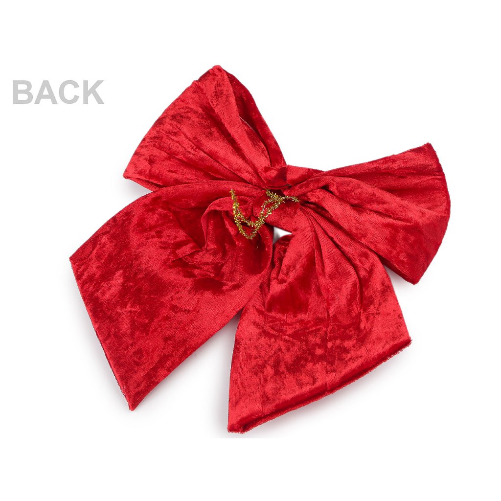 Sametová vánoční mašle vyniká svým elegantním vzhledem a působivou velikostí. Slavnostně ozdobí stromeček, dekorační věnce, dveře, židle, velké dárky apod. Připevníte ji lurexovým drátkem, který je součástí mašle.