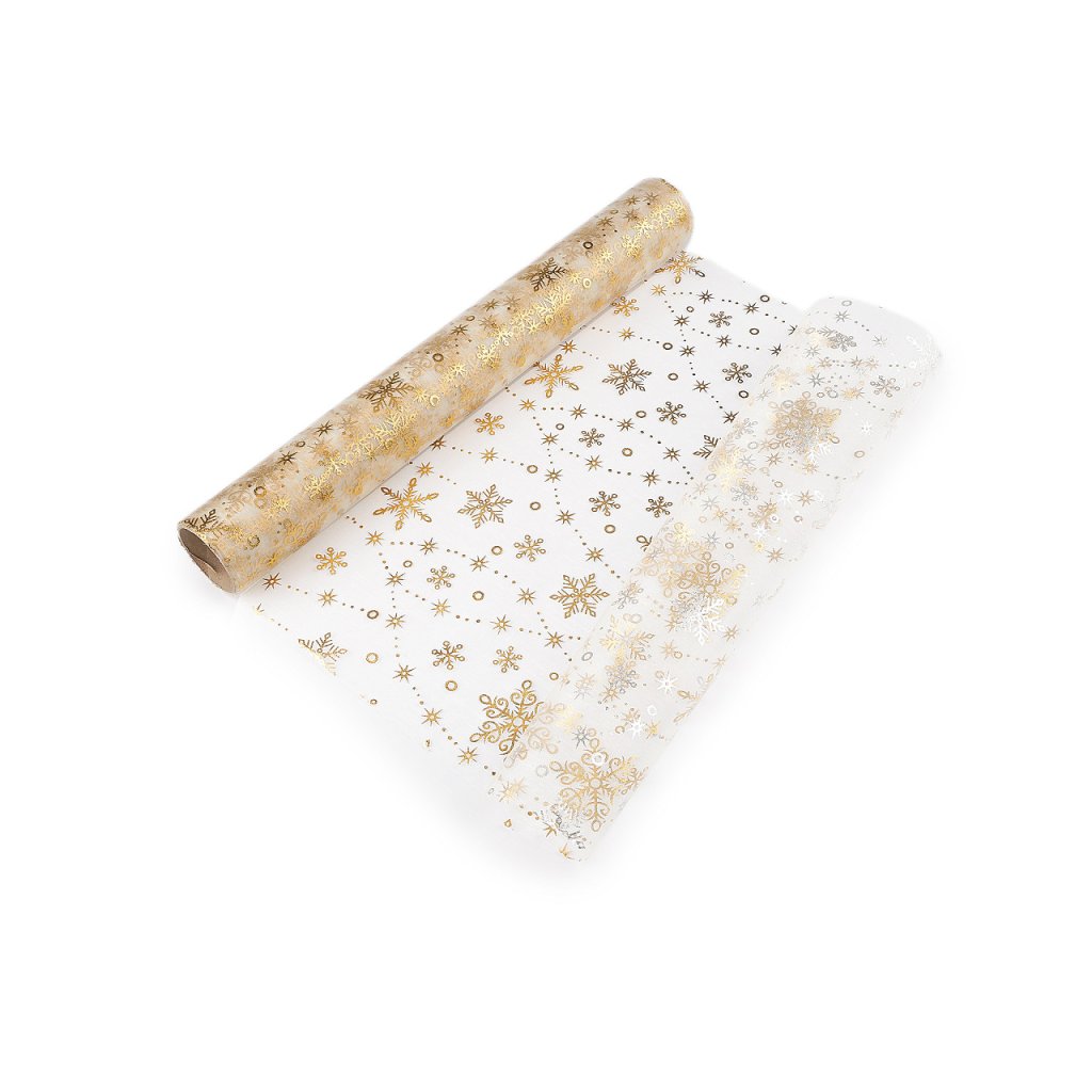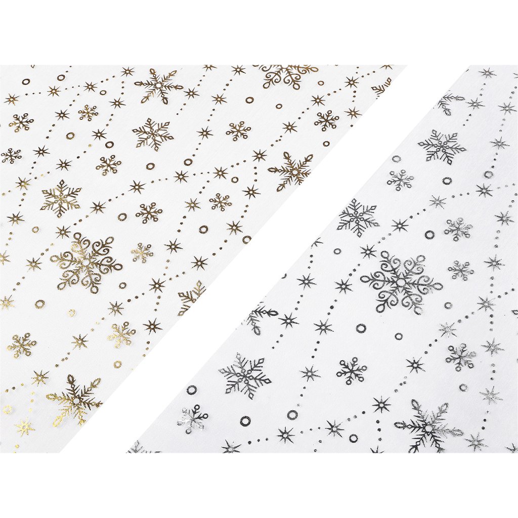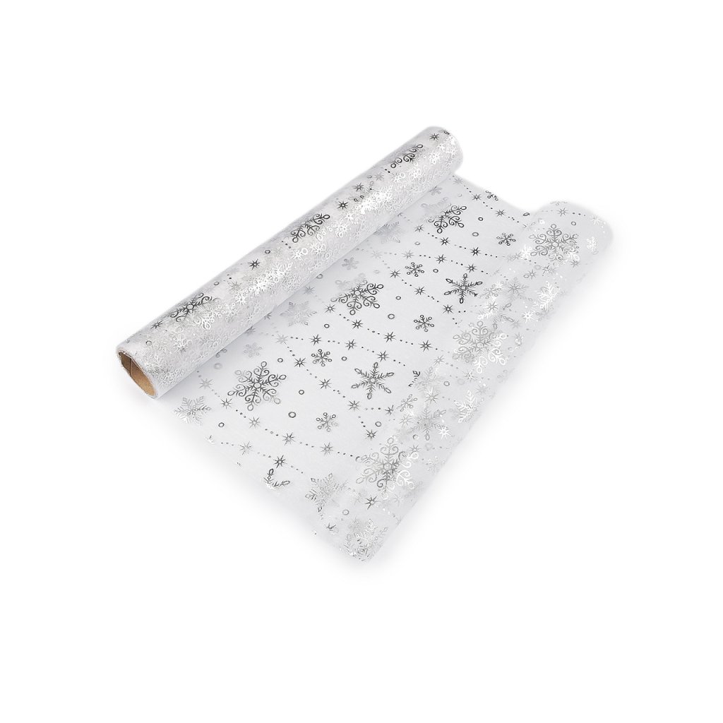 Dekorační organzu s potiskem vloček využijete na slavnostní zdobení vánoční tabule, ale je vhodná i k aranžování a tvorbě různých dekorací. Potisk vloček je metalický a jednostranný.