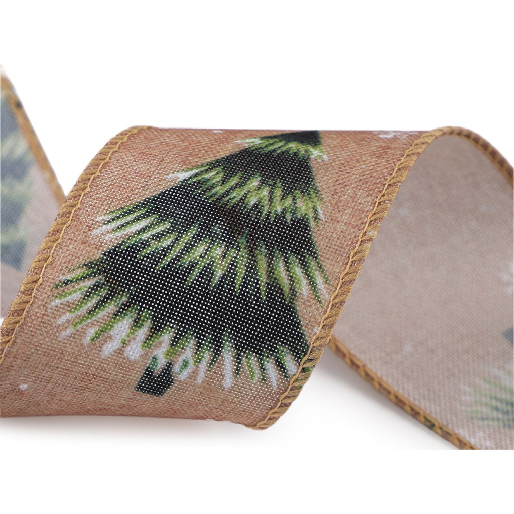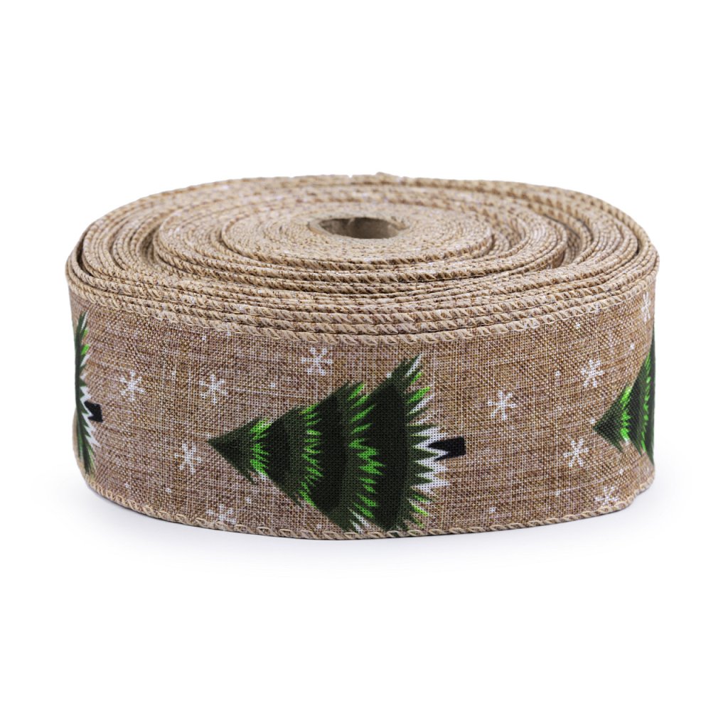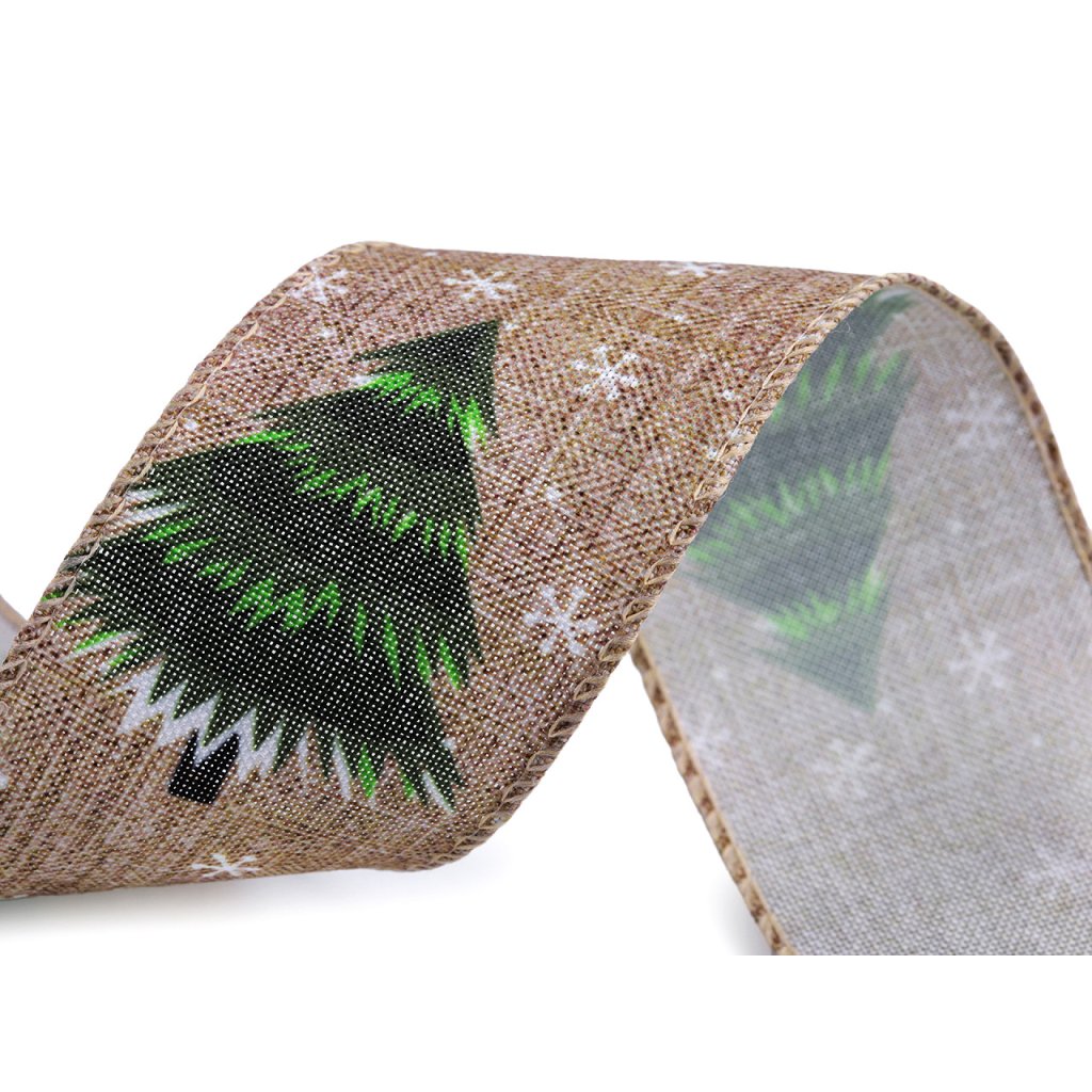 Vánoční plátnová stuha stromeček s drátem šíře 50 mm