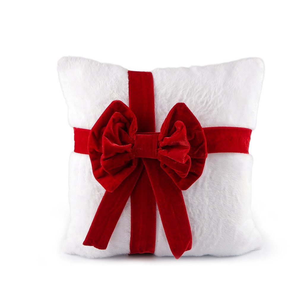 Vánoční plyšový povlak na polštář s mašlí 40x40 cm