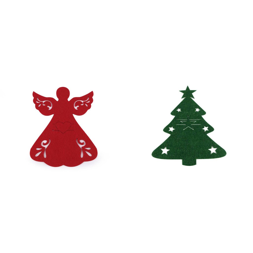 Máte rádi dokonale prostřený vánoční stůl? Nezapomeňte na obaly na příbory s vánočním motivem. Vytvoří sváteční atmosféru, jsou vhodné i jako dárek pro vaše přátele, rodinu i obchodní partnery. Obaly jsou z plsti, ploché, s ozdobnými výseky. Uprostřed mají výseky na provlečení příboru.