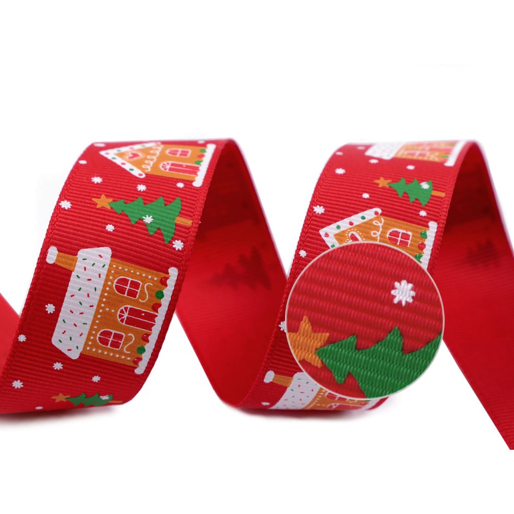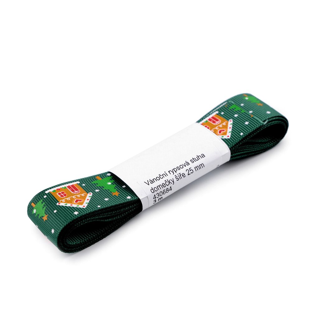 Dekorační rypsová stuha s vánočními domečky je velice kvalitní. Na povrchu má typické jemné žebrování. Potisk je jednostranný.