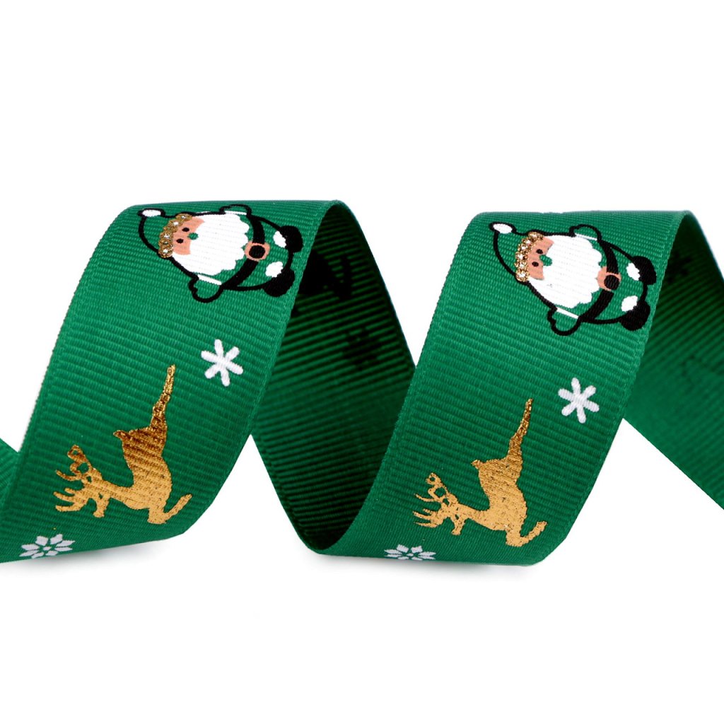 Dekorační rypsová stuha s vánočními motivy je velice kvalitní. Díky zlatým lesklým metalickým detailům v potisku je velice poutavá. Na povrchu má typické jemné žebrování. Potisk je jednostranný.