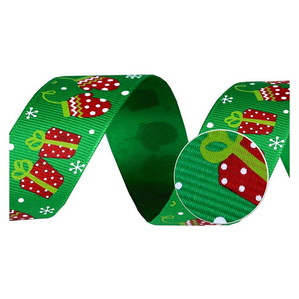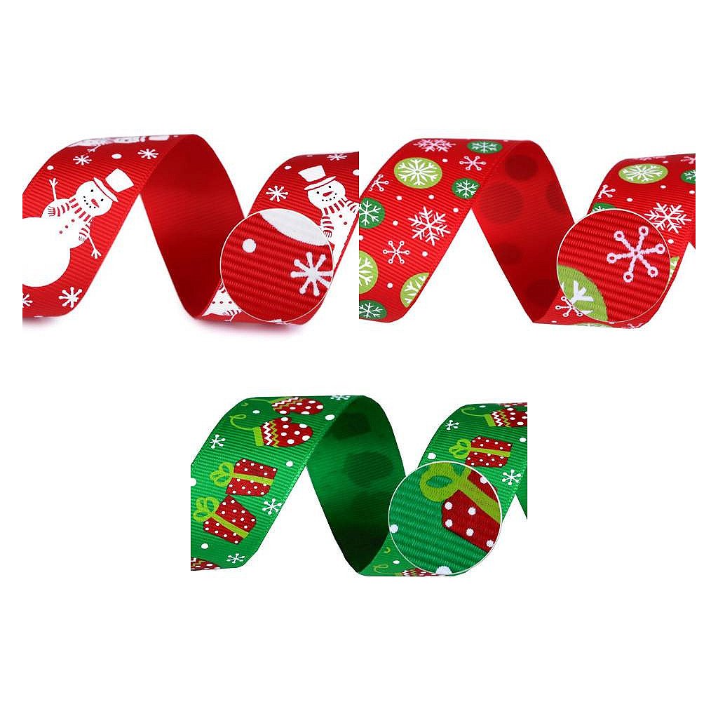 Dekorační rypsová stuha s vánočními motivy má na povrchu typické jemné žebrování. Potisk je jednostranný.