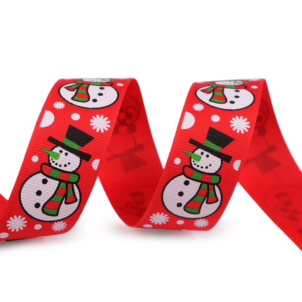 Vánoční rypsová stuha sněhulák šíře 25 mm
