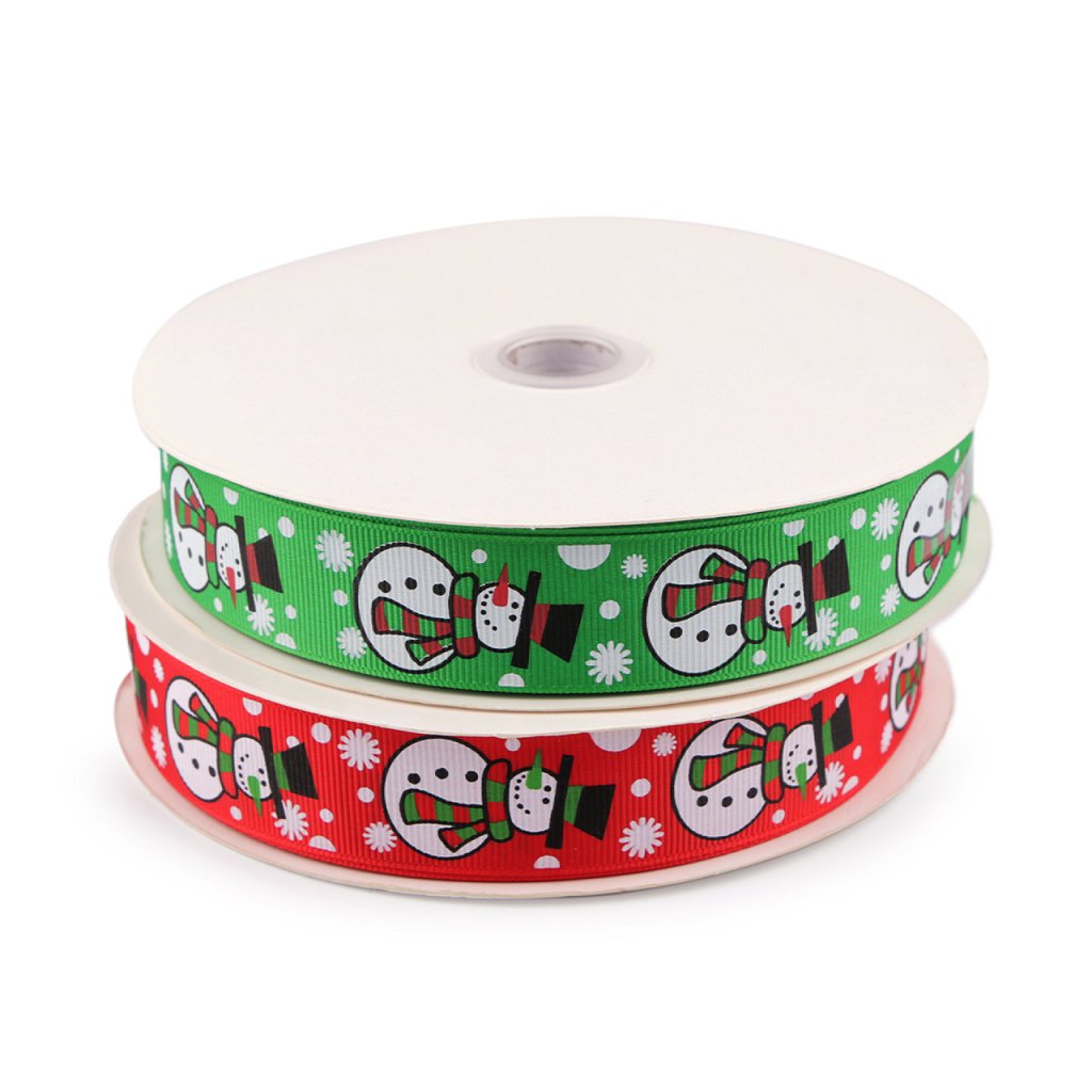 Dekorační rypsová stuha se sněhuláky je velice kvalitní. Na povrchu má typické jemné žebrování. Potisk je jednostranný.