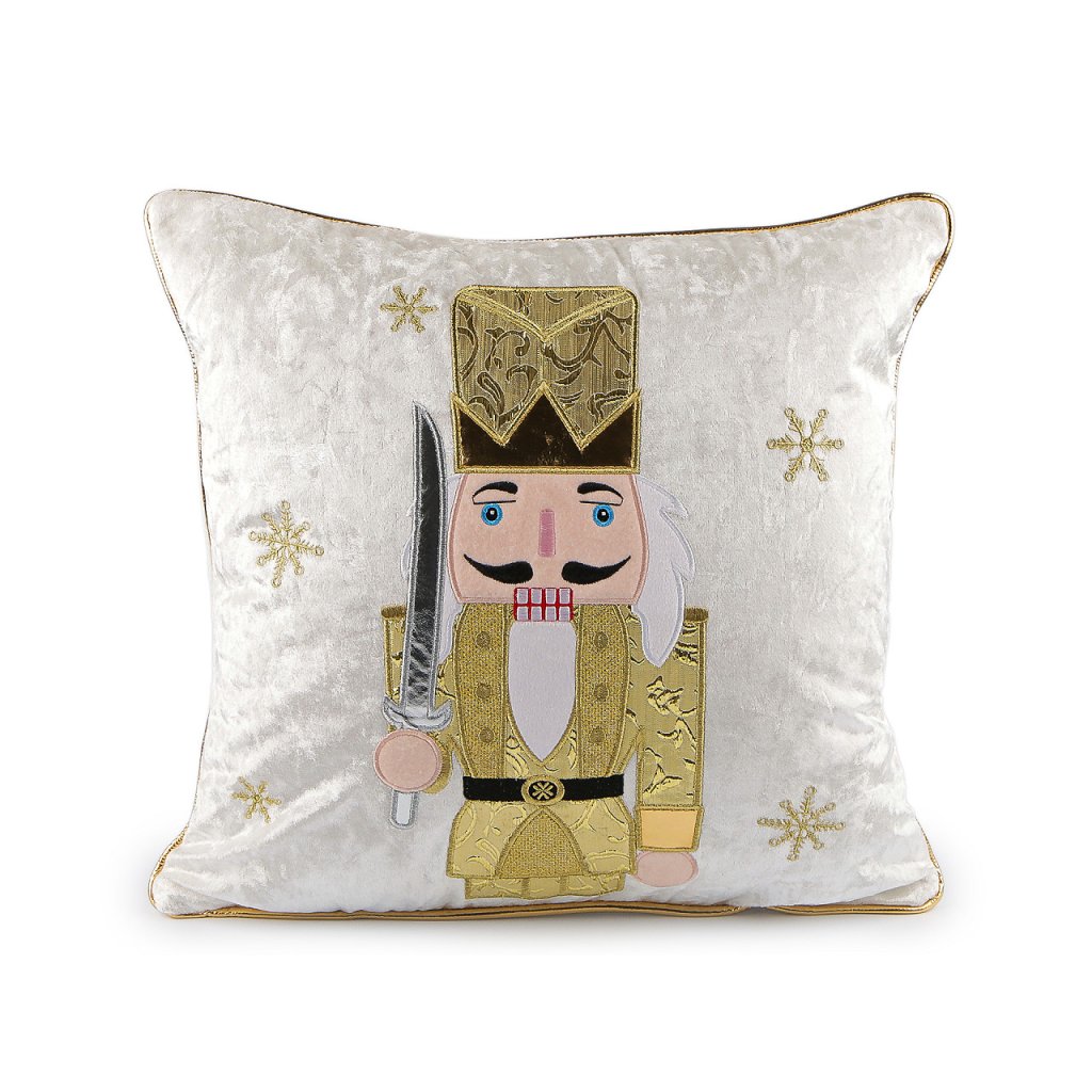 Sametový povlak na polštář zdobí vánoční motiv louskáčka. Do interiéru vnese tradiční vánoční kouzlo a přispěje k pohodové atmosféře, jeho jemný a hebký materiál poskytuje příjemný dotek. Povlak je jednostranný, velice kvalitní, motiv louskáčka tvoří pevně našitá aplikace s výšivkou a metalickými detaily. Vločky jsou vyšité. Okraj povlaku je olemovaný zlatou paspulkou. Zapíná se na zip.