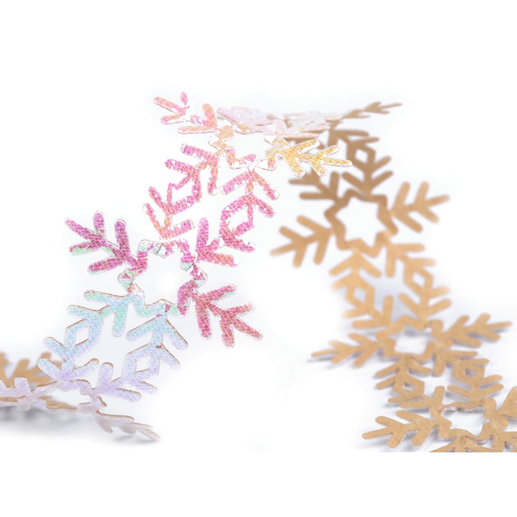 Samolepicí prýmek s třpytivými vločkami využijete na scrapbooking a výrobu vánočních dekorací. Vločky můžete nastříhat na jednotlivé kusy a ozdobit s nimi třeba přáníčka, pozvánky, alba, diáře, dárky apod. Doporučujeme je lepit na suchý, hladký a pevný povrch.