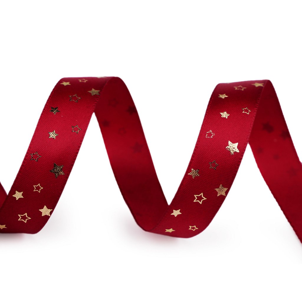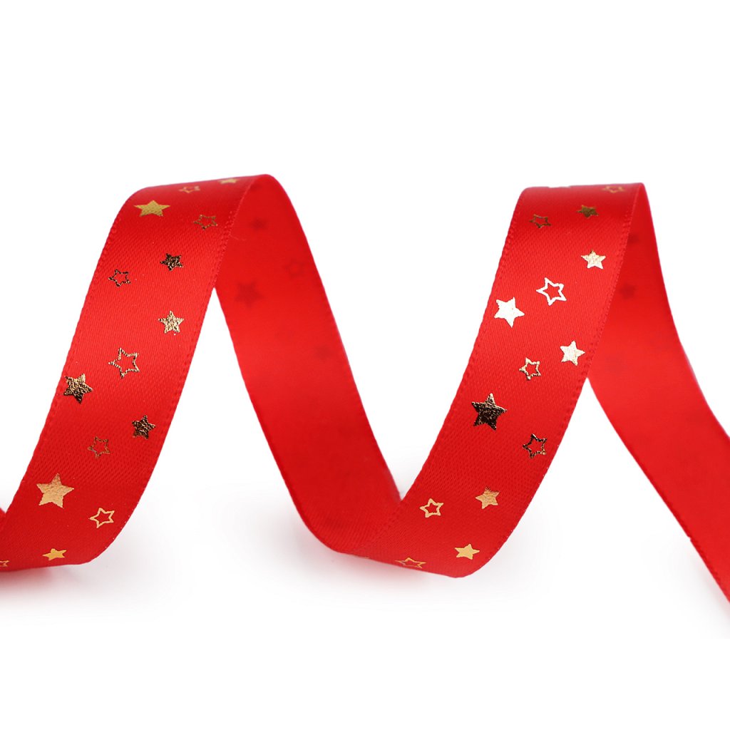 Vánoční saténová stuha hvězdy šíře 15 mm