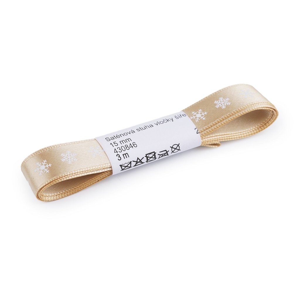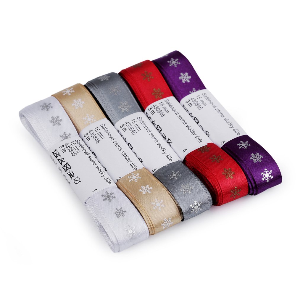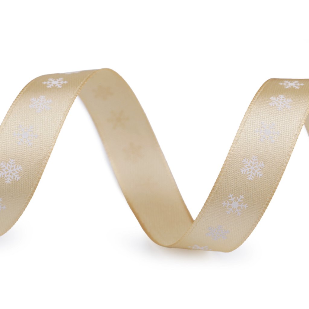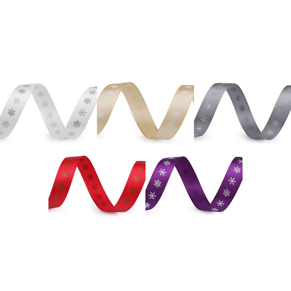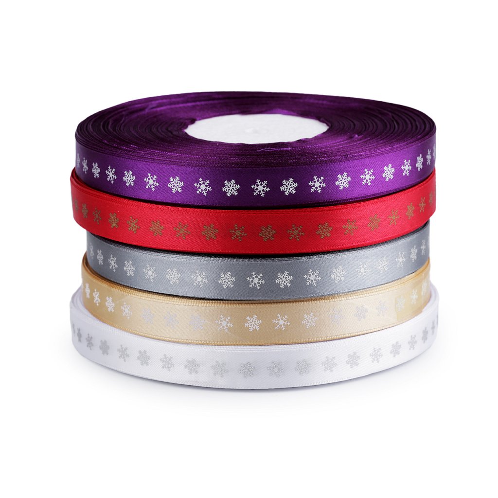 Dekorační saténová stuha s potiskem vloček je velice poutavá, potisk je jednostranný.