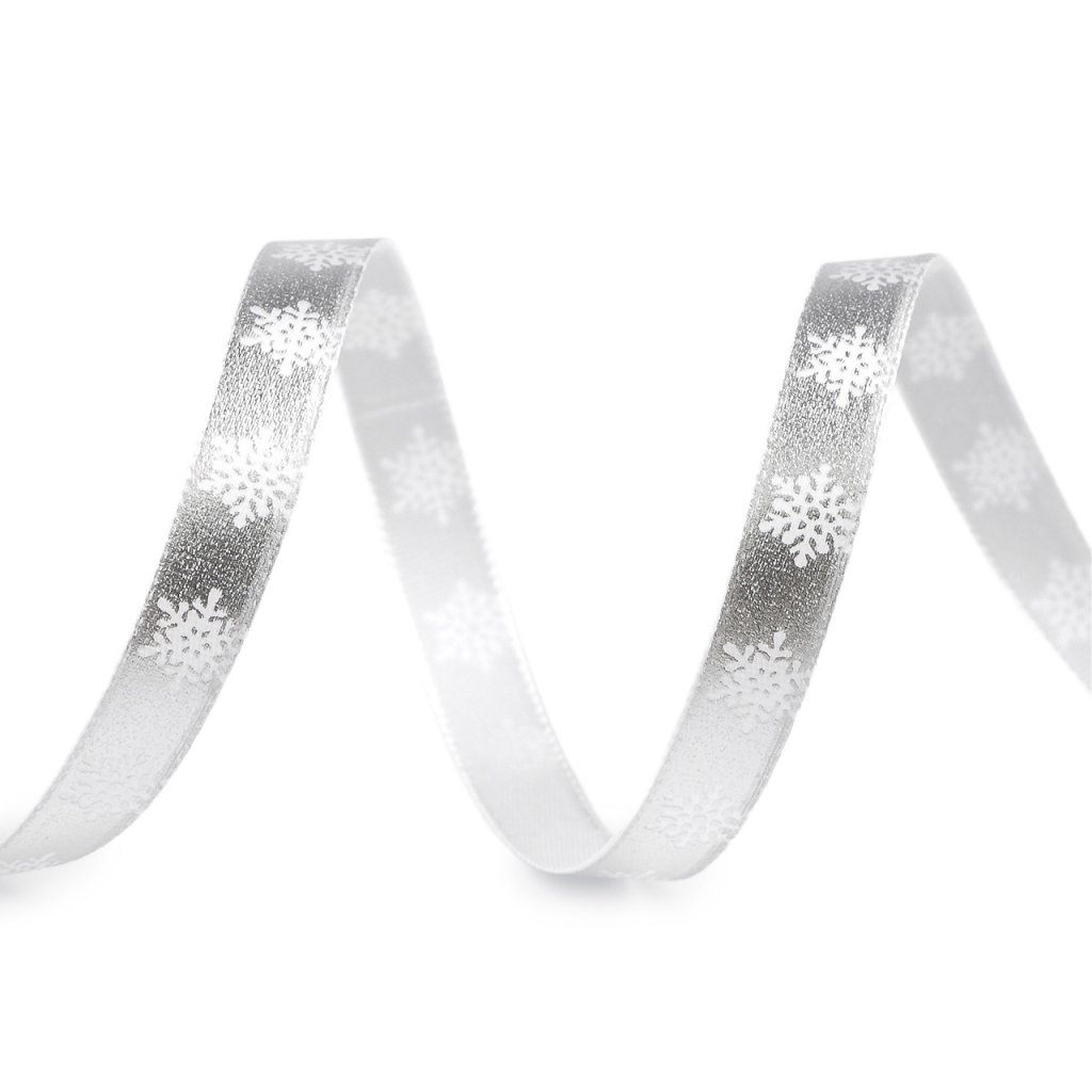 Dekorační stuha s metalickým potiskem s vločkami má poutavý lesk. Potisk je jednostranný.