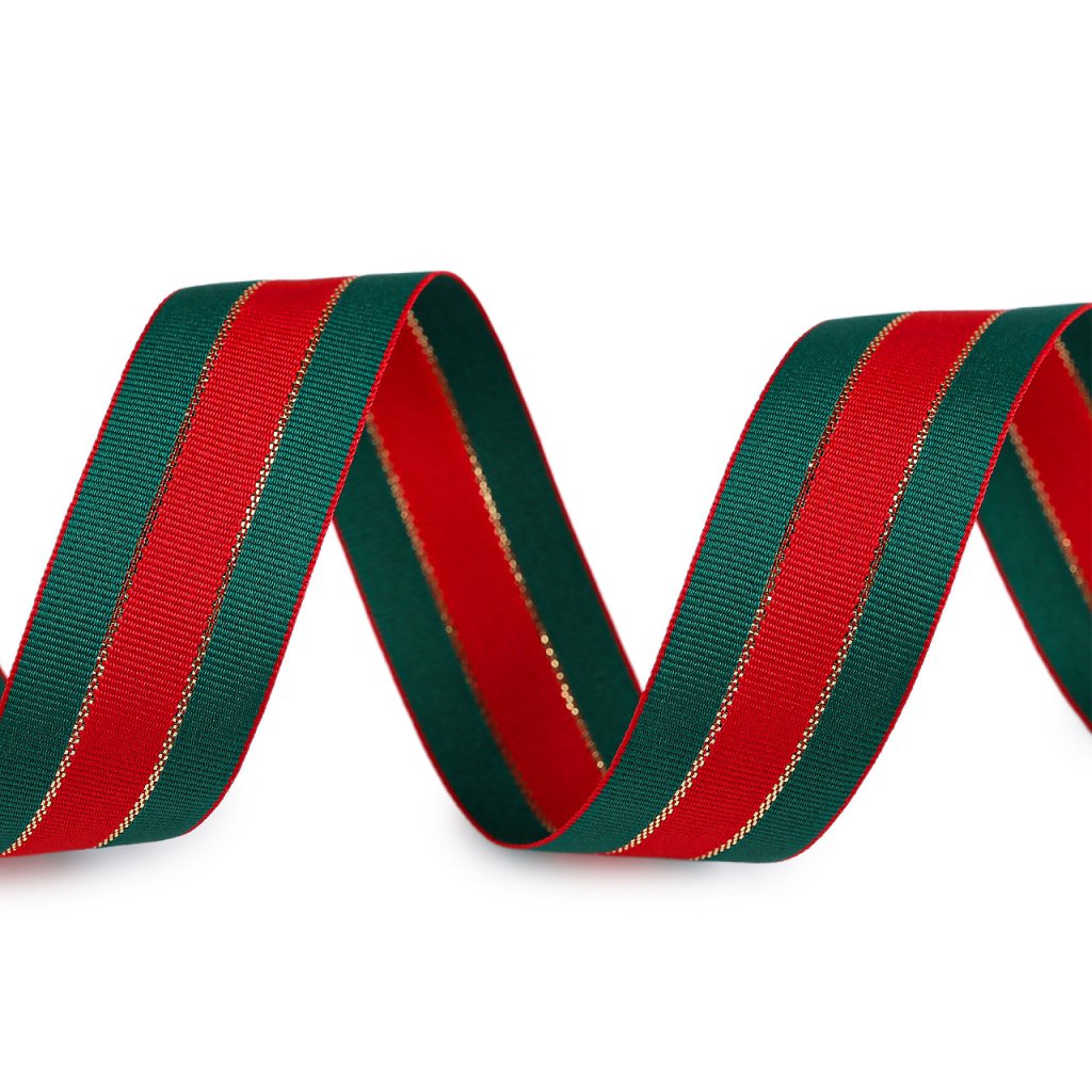 Vánoční stuha se zlatým lurexem je oboustranná, měkká, ale přitom dostatečně tuhá.