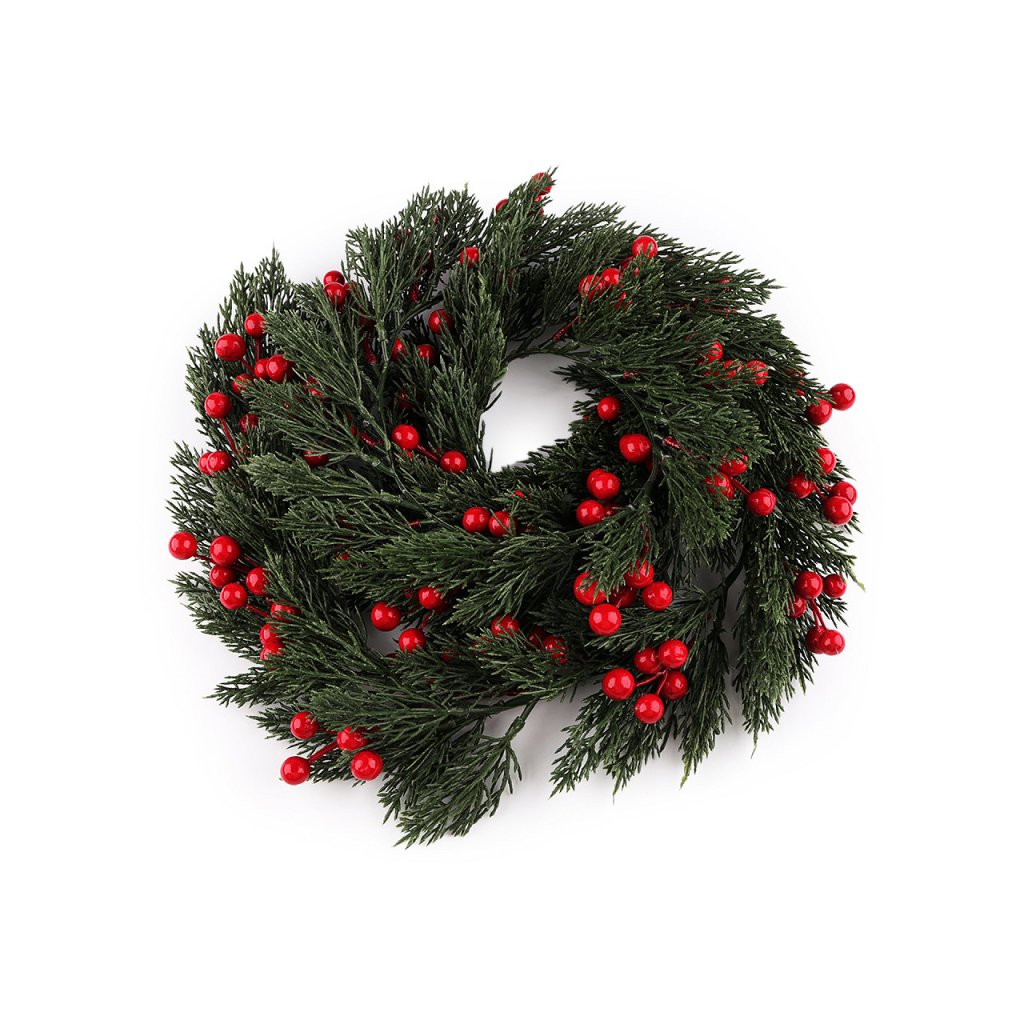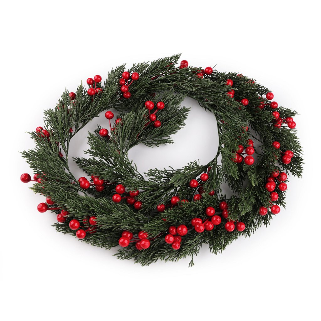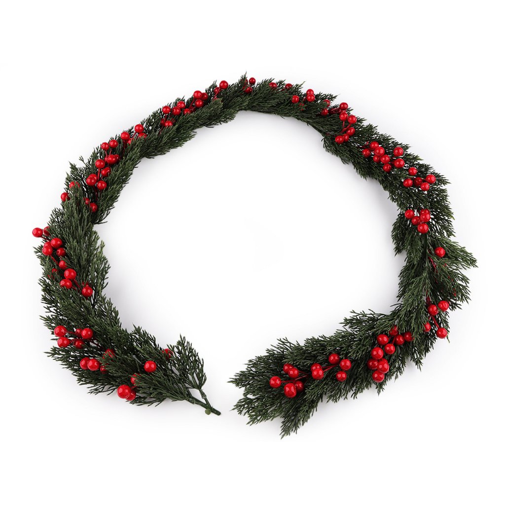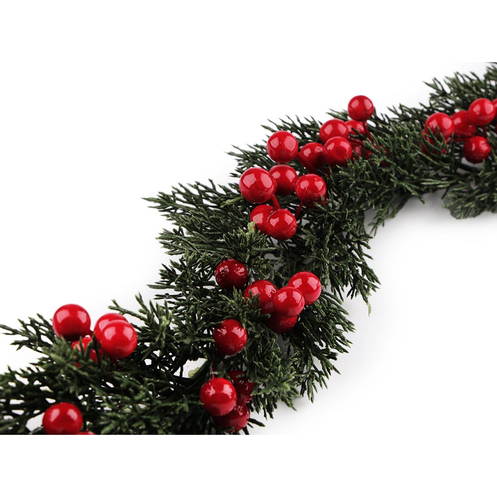 Vánoční girlanda je bohatě ozdobená bobulemi. Lze ji nechat v nataženém stavu nebo ji stočit do věnce. Využijete ji na ozdobení dveří, krbu, oken nebo stolu, hlavně během zimních svátků. Jedná se o umělou dekoraci, nepoužívejte na krb, ve kterém se topí.