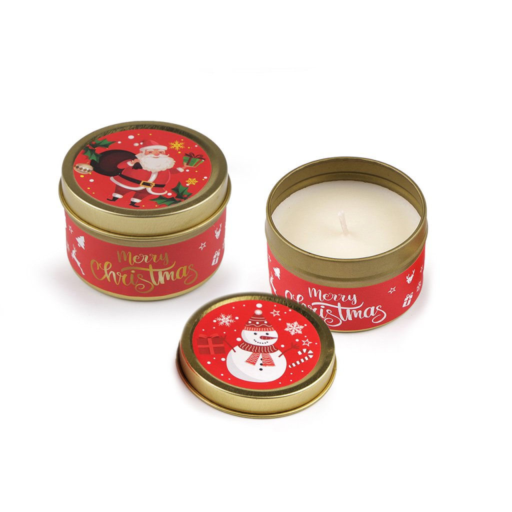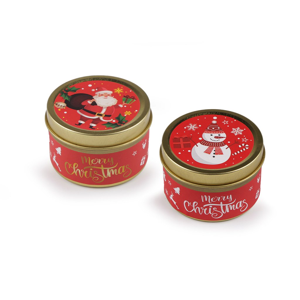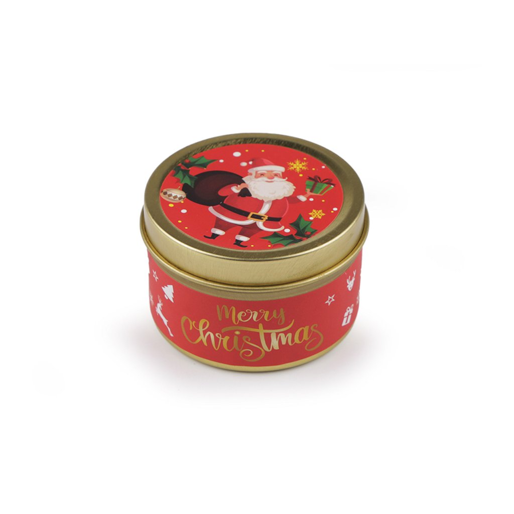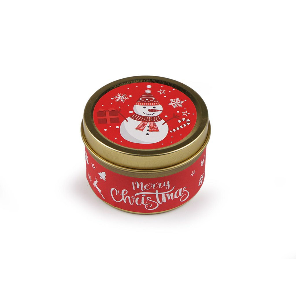 Vánoční vonná svíčka v plechové dóze vytvoří útulnou atmosféru v jakémkoli interiéru.