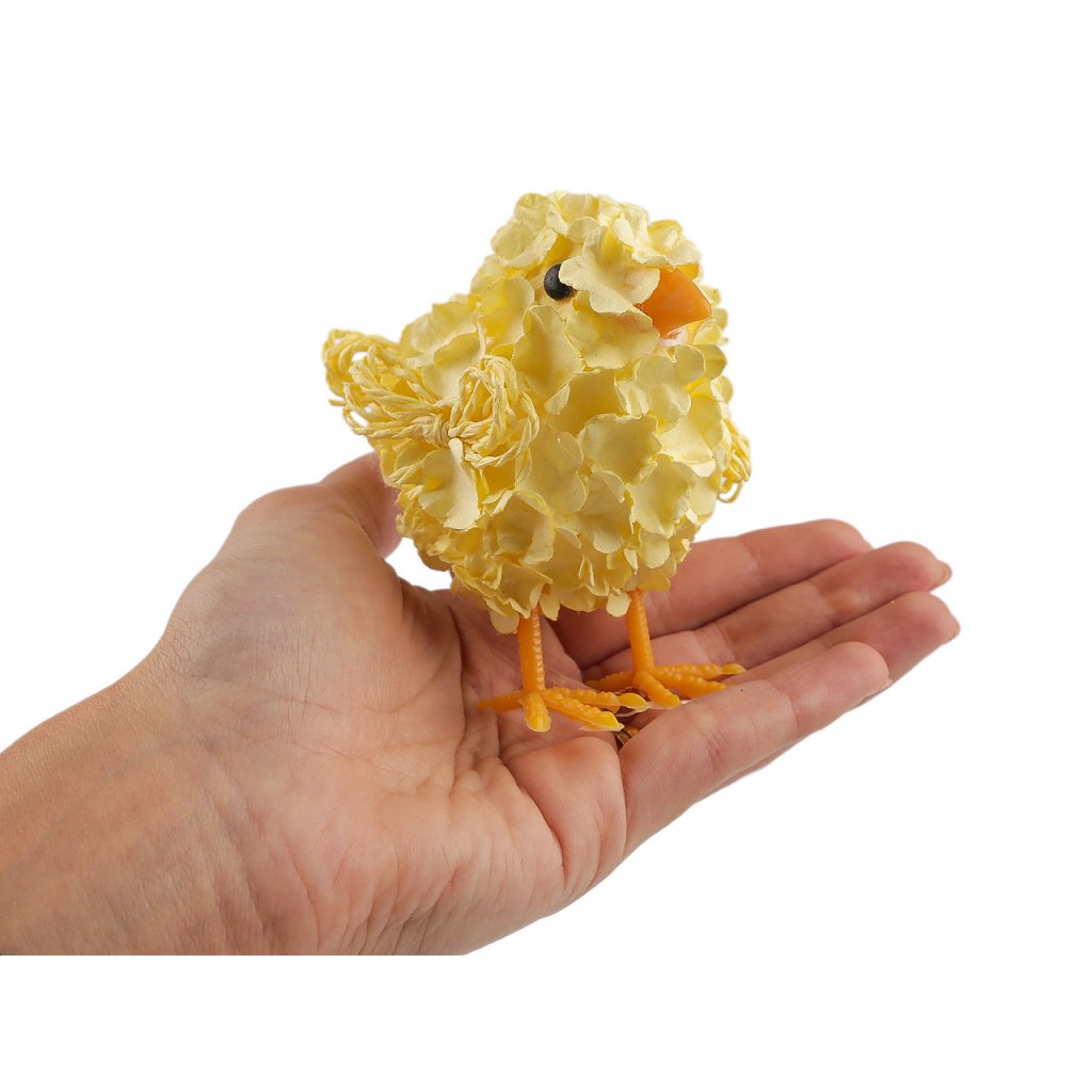 Dekorační kuřátko oživí velikonoční a jarní vazby, aranžmá, květináče i věnce. Základ je polystyrenový, tělo kuřátka je pokryté drobnými papírovými květy.