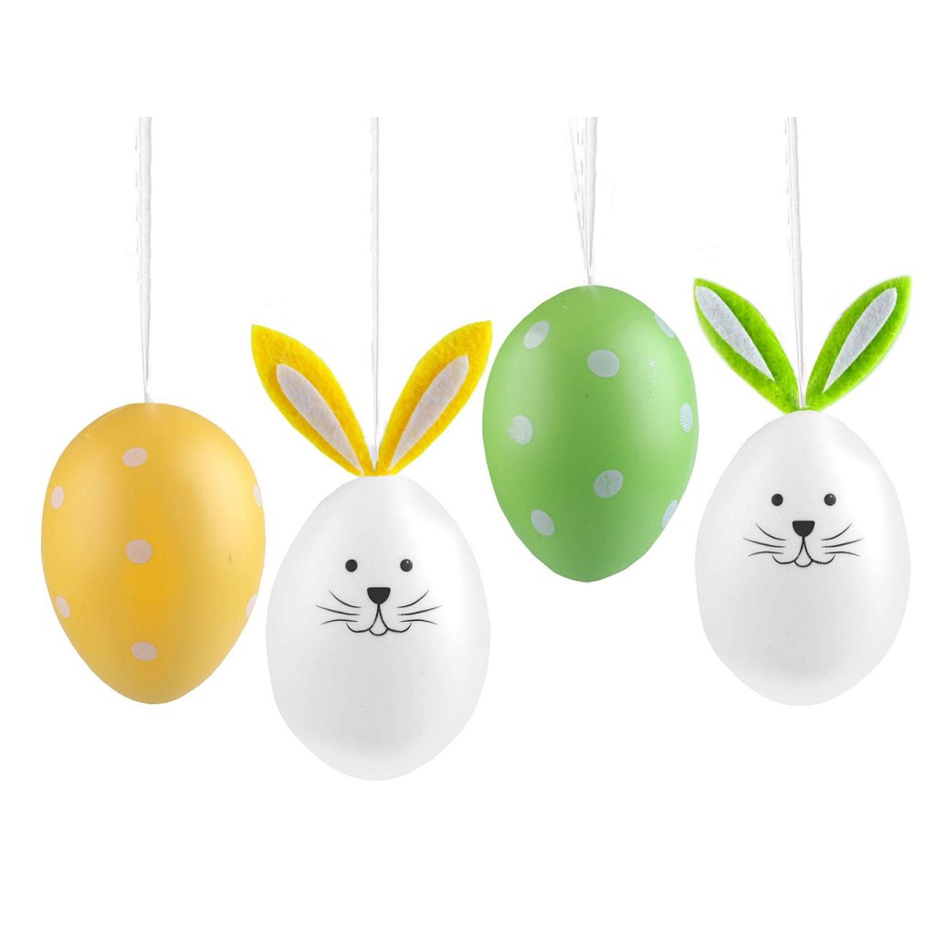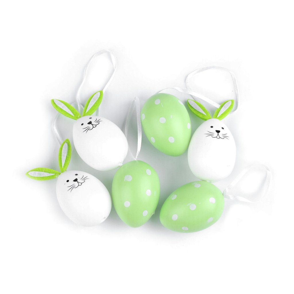 Tři vajíčka v balení jsou s puntíky a tři mají podobu roztomilého zajíčka.