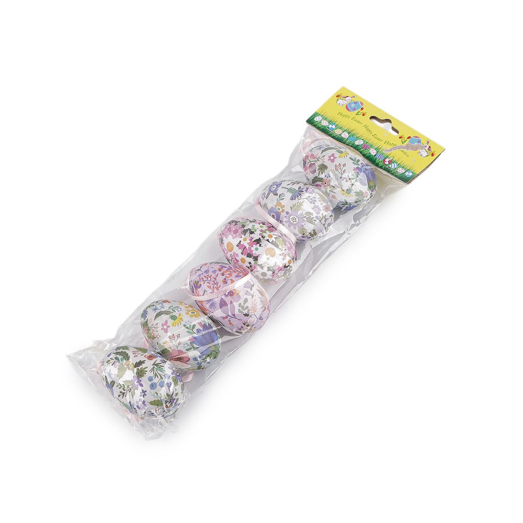 Velikonoční vajíčka s květinovým designem jsou opatřená poutkem pro snadné zavěšení, což umožňuje jejich umístění na větvičky ve váze, věnce nebo do jarních aranžmá. Květinové motivy dodají interiéru svěží a veselou atmosféru jara.