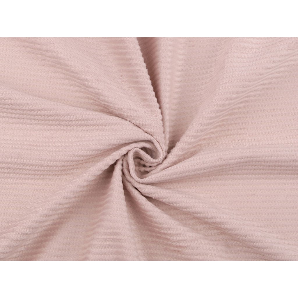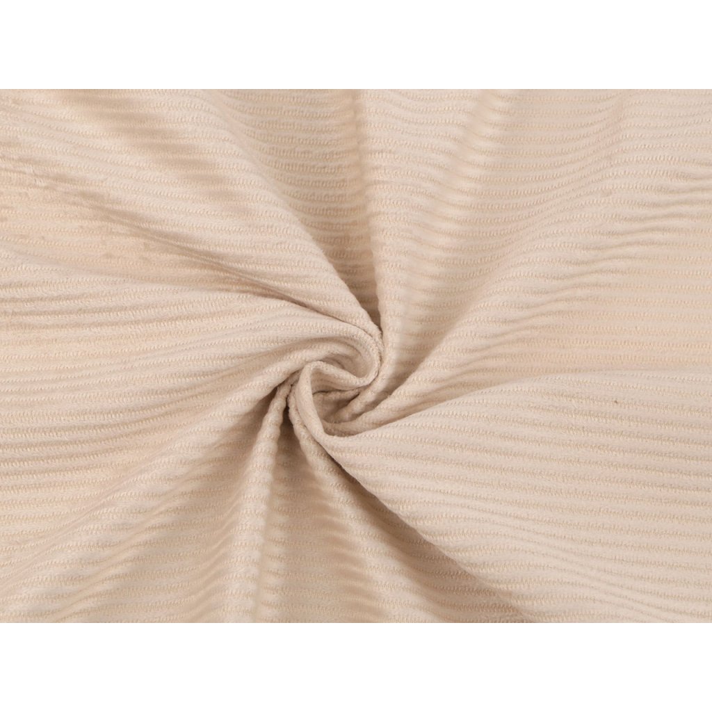 Oděvní sametová látka Velvet má zajímavou strukturu proužků. Připomíná klasický manšestr. Látka je měkká a příjemná na dotek. Využijete ji na šití oděvů (mikin, tepláků), ale i dek a polštářů.