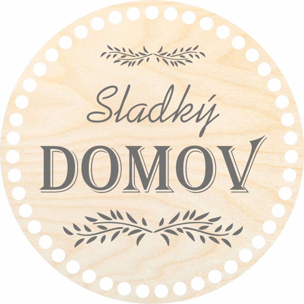 Víko s motivem "Sladký domov" pro košíky vyráběné ze špagetových přízí. Motiv je vytištěn UV tiskárnou na víko z březové překližky.