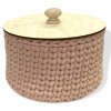 Víko s otvorem 5 mm pro dřevěnou knopku nebo ouško z příze na kruhový košík o průměru 10 cm.