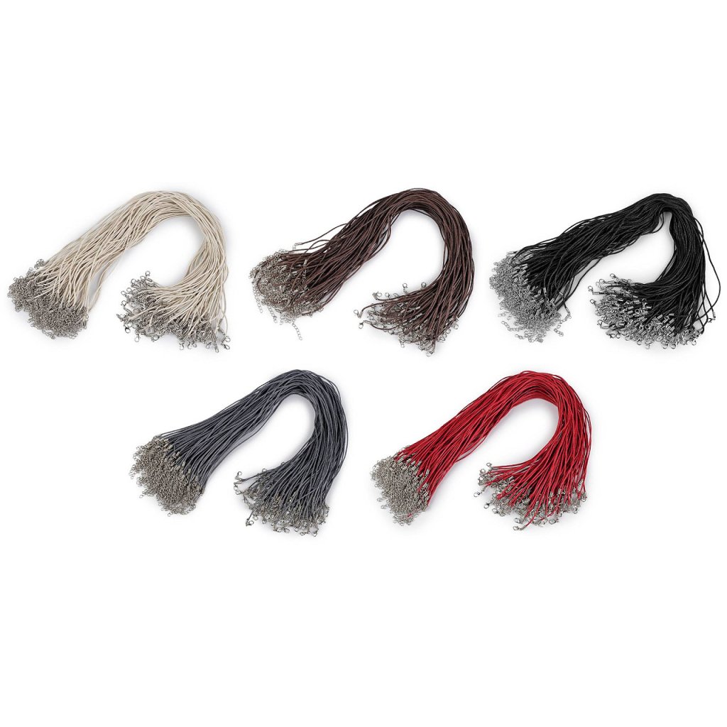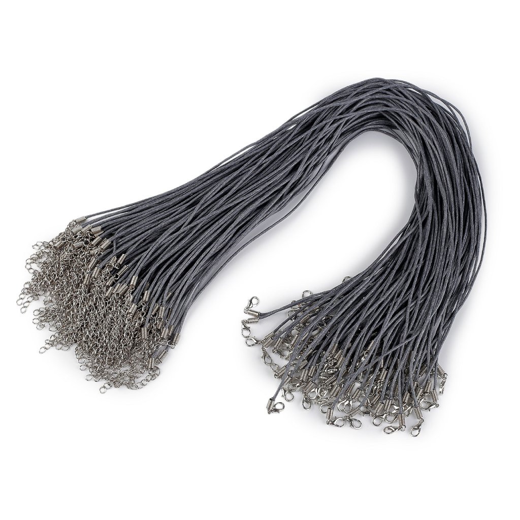 Bavlněné šňůrky, které jsou povrchově ošetřené voskováním. Jsou ve veselých barvách a s hotovým připevněným zapínáním. Stačí pouze navléct přívěsek a vyrazit. Samozřejmostí tohoto hotového výrobku je prodlužovací řetízek. Délka 45 cm + 5 cm adjustační řetízek. Karabinka 7 x 12 mm, šňůra průměr 1,5 mm.