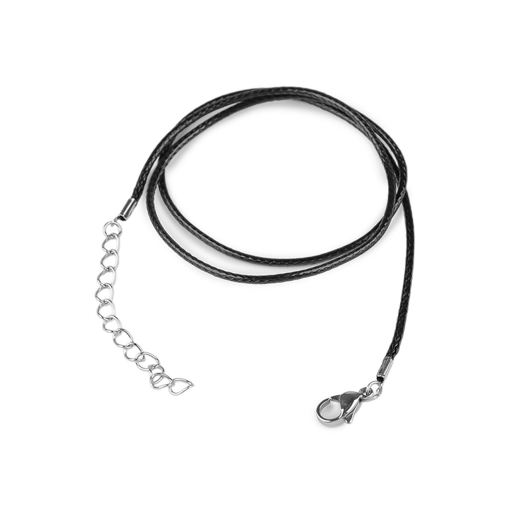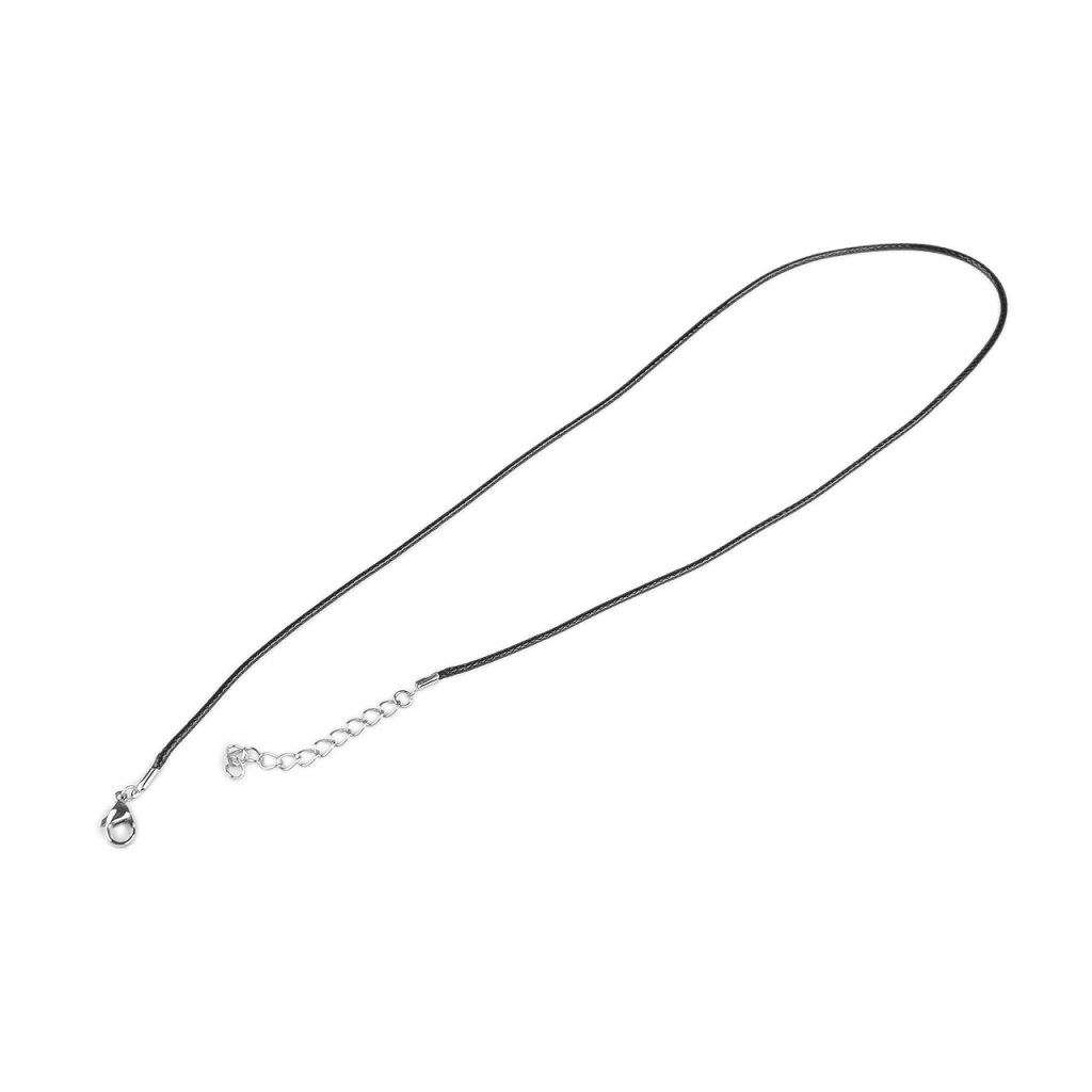 Šperková šňůrka je povrchově ošetřená voskováním. Má připevněné kompletní zapínání z nerezové oceli na karabinku. Stačí pouze navléct přívěsek a vyrazit. Samozřejmostí tohoto hotového výrobku je prodlužovací řetízek. Délka 45 cm + 5 cm adjustační řetízek. Karabinka 7 x 12 mm, šňůra má průměr 1,5 mm.