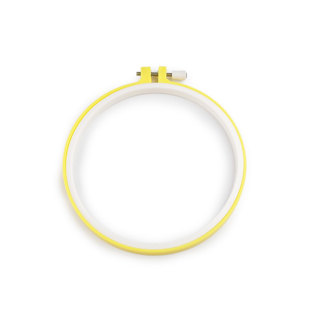 Vyšívací kruh je vyrobený z plastu. Je opatřen kovovým stahovacím šroubkem, pomocí něhož přichytnete vyšívací předlohu.