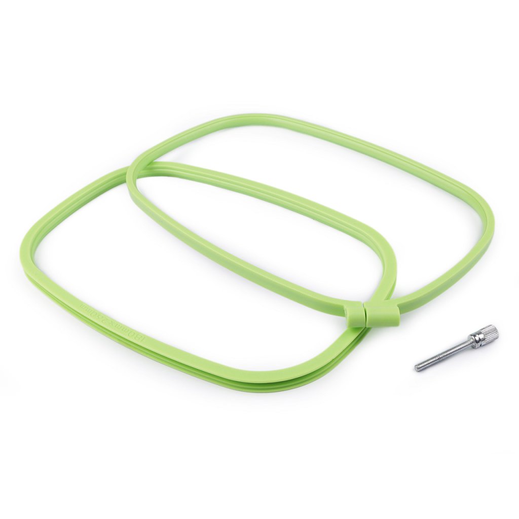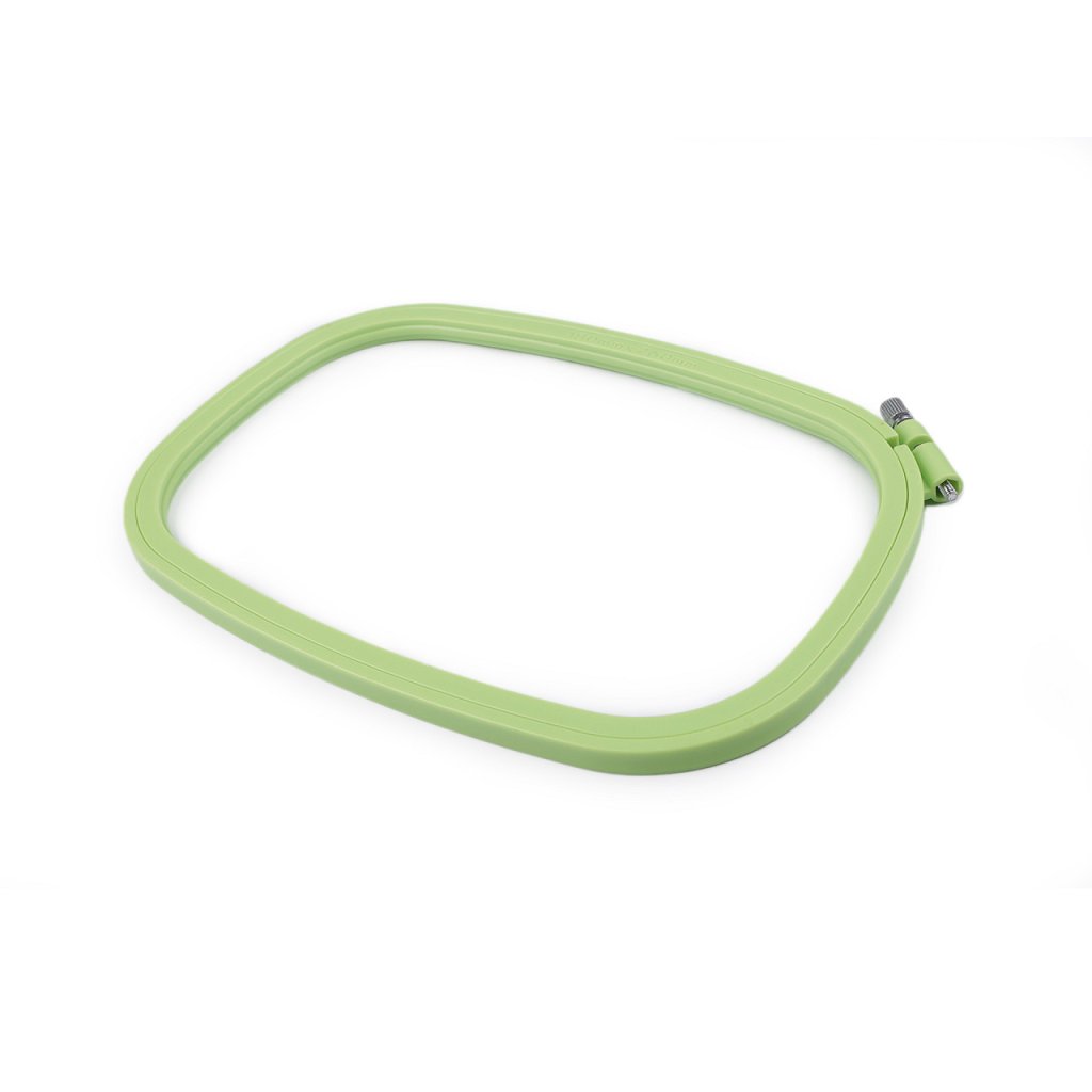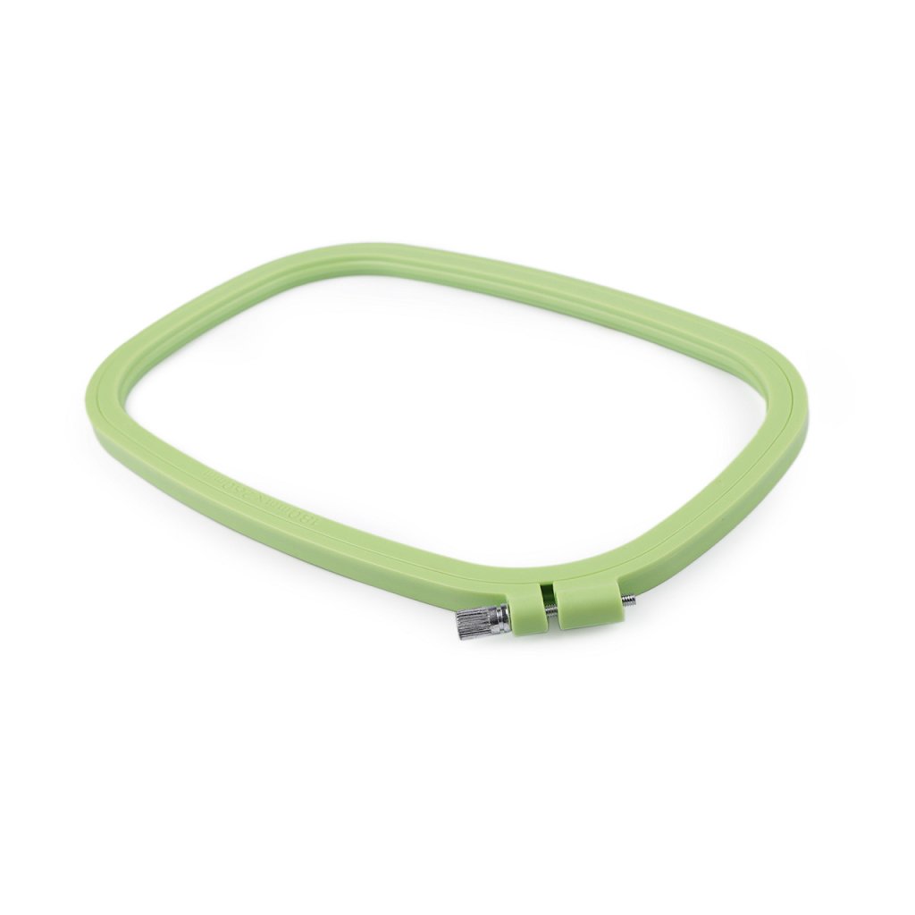 Plastový vyšívací rámeček je opatřený kovovým stahovacím šroubkem. S jeho pomocí se upevňuje a vypíná vyšívací tkanina do rámečku.