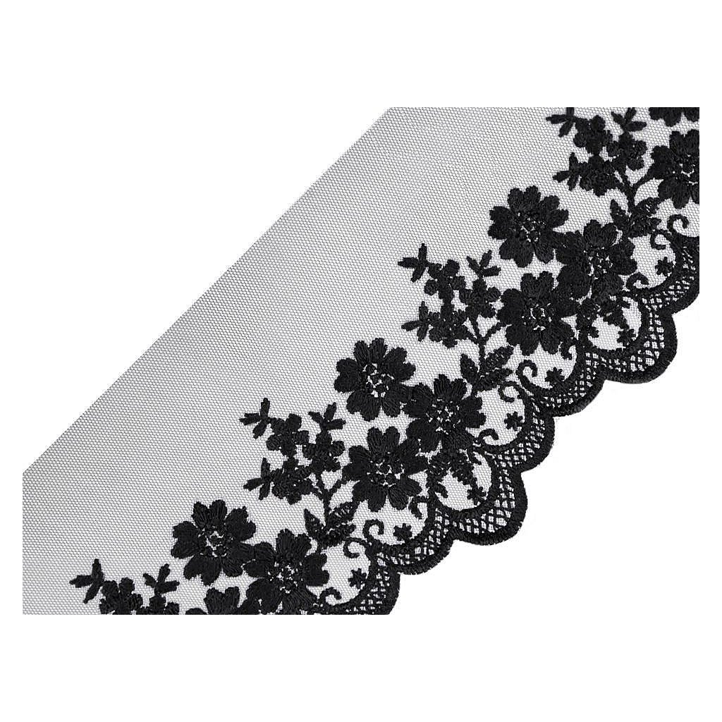 Krajka na monofilu má jemný květinový vzor, který je matný.