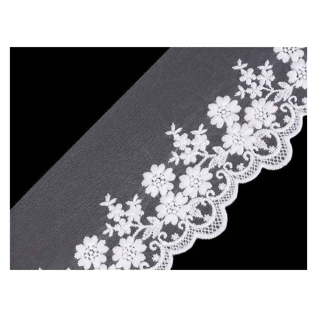 Použití: Krajku využijete na zdobení svatebních šatů, šatů pro družičky, letních halenek, sukní apod.