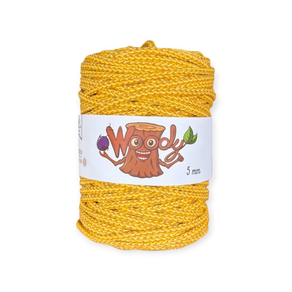 Bavlněná příze Woody o tloušťce 5 mm v krásném žlutém odstínu, představuje kvalitní a ekologický materiál pro vaše tvoření. Skládá se ze 100% recyklovaného bavlněného opletu a pevného polyesterového (PES) jádra. Díky tomu je šňůra maximálně odolná a vaše výrobky si dlouhodobě udrží svůj dokonalý tvar.
